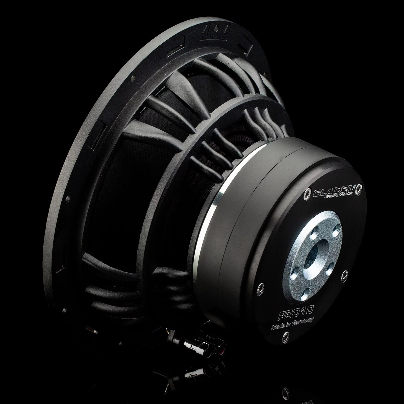 Subwoofer Gladen PRO 10 bol vyvinutý z génov leteckej technológie. Dôležité komponenty ako kôš a zložená membrána boli prevzaté z úspešného radu Aerospace. Na pohon bol použitý optimalizovaný feritový systém, ktorý zaručuje optimálny odvod tepla aj pri vysokých úrovniach. Výsadou tohto subwoofera je schopnosť zahrať tie najhlbšie basy v extrémne vysokej kvalite. Radom PRO začala nová éra značky Gladen v sústredení sa na maximálnu kvalitu zvuku. Subwoofer bol ocenený aj EISA Award pre rok 2017/2018 a v nemeckom Car & Hifi získal výslednú známku 1,2. Test si môžete pozrieť TU.