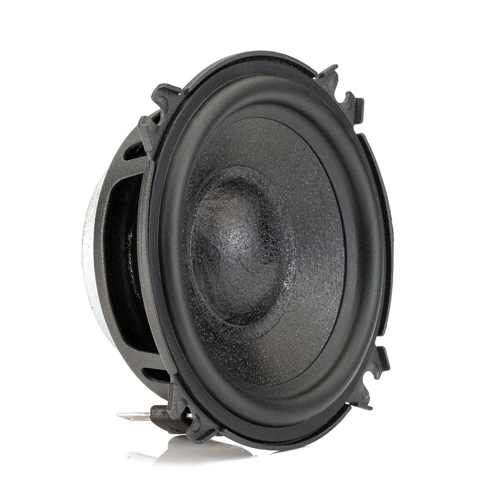 | Typy reproduktorov Koaxiálne reproduktory: Koaxiálne reproduktory sa vyznačujú konštrukciou tzv. Všetko v jednom. Výškový a stredobasový reproduktor sú v jednom koši. Výhodou je jednoduchšia montáž, ale vďaka spojeniu resp. blízkosti pásiem v jednom reproduktore, sa zvyčajne zníži kvalita zvuku. Spravidla uprostred stredobasového reproduktora, je výškový reproduktor, ktorého kmitacia cievka pracuje v druhej vzduchovej medzere spoločného magnatického obvodu. Trojpásmový koaxiálny reproduktor sa skladá zo stredobasového reproduktora, v predu na osobitnom nosníka je stredový reproduktor a samostatný výškový. Komponentné reproduktory: Komponentné reproduktory sa vyznačujú rozdelením na jednotlivé frekvenčné pásma, výškové + stredobasové + popr. basové pásmo. Jednotlivé reproduktory sa dajú umiestniť úplne oddelene, čo má za výsledok lepší zvukový aj akustický prejav. V drvivej väčšine prípadov komponentných reproduktorov je dodávaná aj externá výhybka, ktorá rozdeľuje výškové, stredové / stredobasové a u třípásma aj basové pásmo popr. umožňuje nastavenie decibelovej úrovne u výškového reproduktoru (napr. +2 dB, 0 dB, -2 dB), strmosti (napr. 6dB / okt. 12dB / okt.) či aktívne alebo bi-amp zapojenia. | Stredobasové |