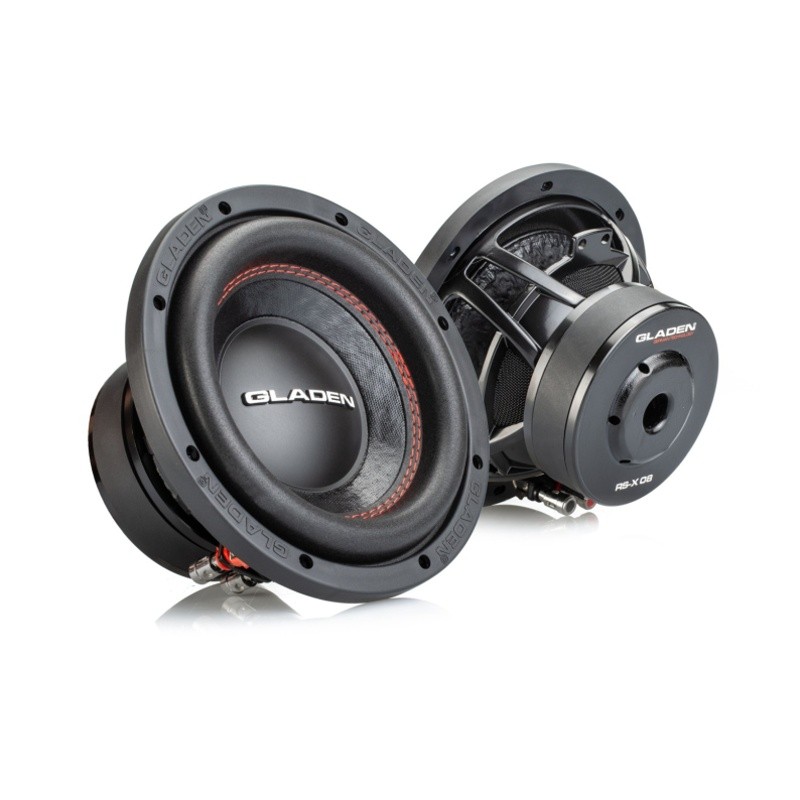 Subwoofery Gladen RS-X kombinujú vysoký výkon pri vysokých úrovniach výkonu bez toho, aby vyžadovali veľké ozvučnice. Tieto vlastnosti sú dosiahnuté kombináciou niekoľkých inovácií zo série Gladen SQX, ako je membrána alebo hliníkový kôš s novou geometriou reproduktorov, ktorá umožňuje inštaláciu do ultrakompaktných boxov. Séria RS-X vychádza z niekoľkoročného vývoja firmy Gladen, a to na základe požiadaviek zákazníkov urobiť subwoofer, ktorý dokáže zahrať kvalitný bas a zároveň je výkonný a dynamický. A tak vznikol model Gladen RS-X 08. Vo výbave nájdete liaty kôš, alebo pretkané uchytenie membrány efektnou červenou niťou. Na vybudenie odporúčame použiť 2kanálový zosilňovač Hertz HCP 2.