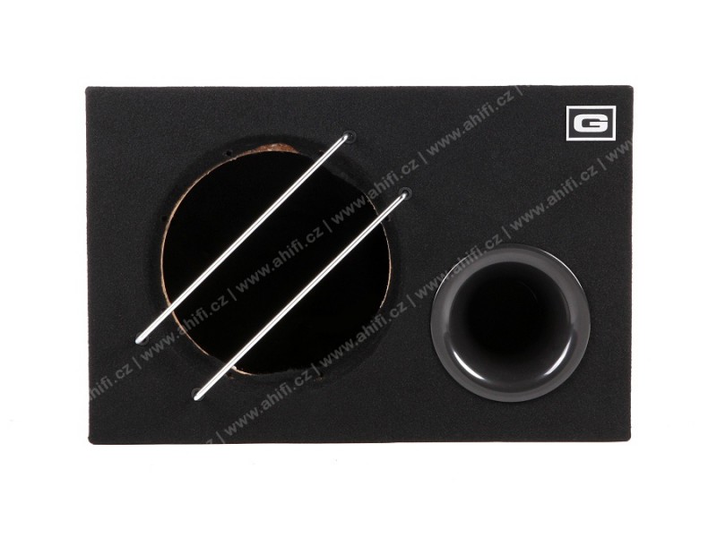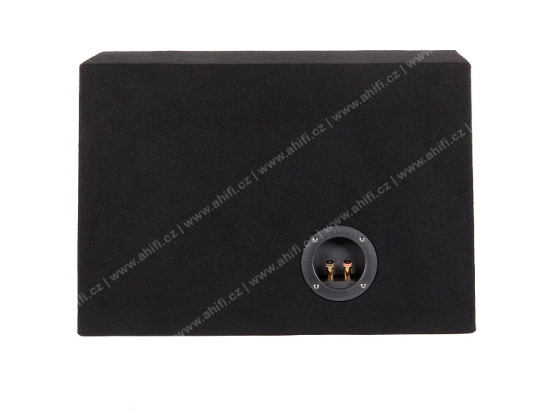 - Ozvučnica je potiahnutá čiernym kobercom, osadená bassreflexovým nátrubkom a terminálom na pripojenie.