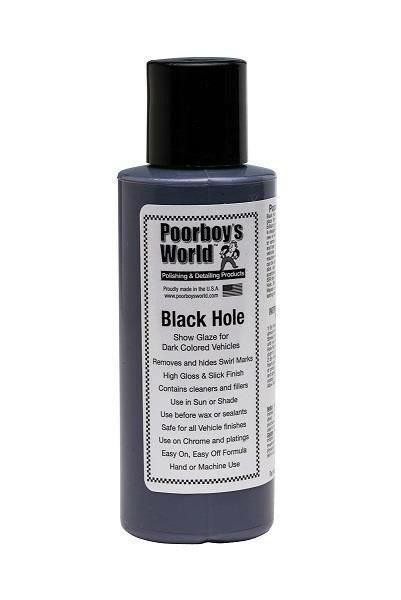Black Hole je ľahko aplikovateľný glaze pre tmavé laky. Najpredávanejší produkt značky Poorboy's na svete. Pomáha vyťažiť maximum z tmavých farieb a pomáha skrývať ľahké hologramy, škrabance a farebné nedokonalosti. Black Hole je určený pre detailerov, automobilových nadšencov a majiteľov výstavných vozidiel, ktorí chcú mať k dispozícii ten najlepší a najhlbší lesk. Je možné aplikovať tak často, ako je potrebné. Môže byť doplnený o vosk alebo sealant, alebo len tak ponechaný na výstavných vozidlách. Black Hole je možné aplikovať ručne alebo strojovo. Môžete ho aplikovať ako na slnku, tak v tieni.