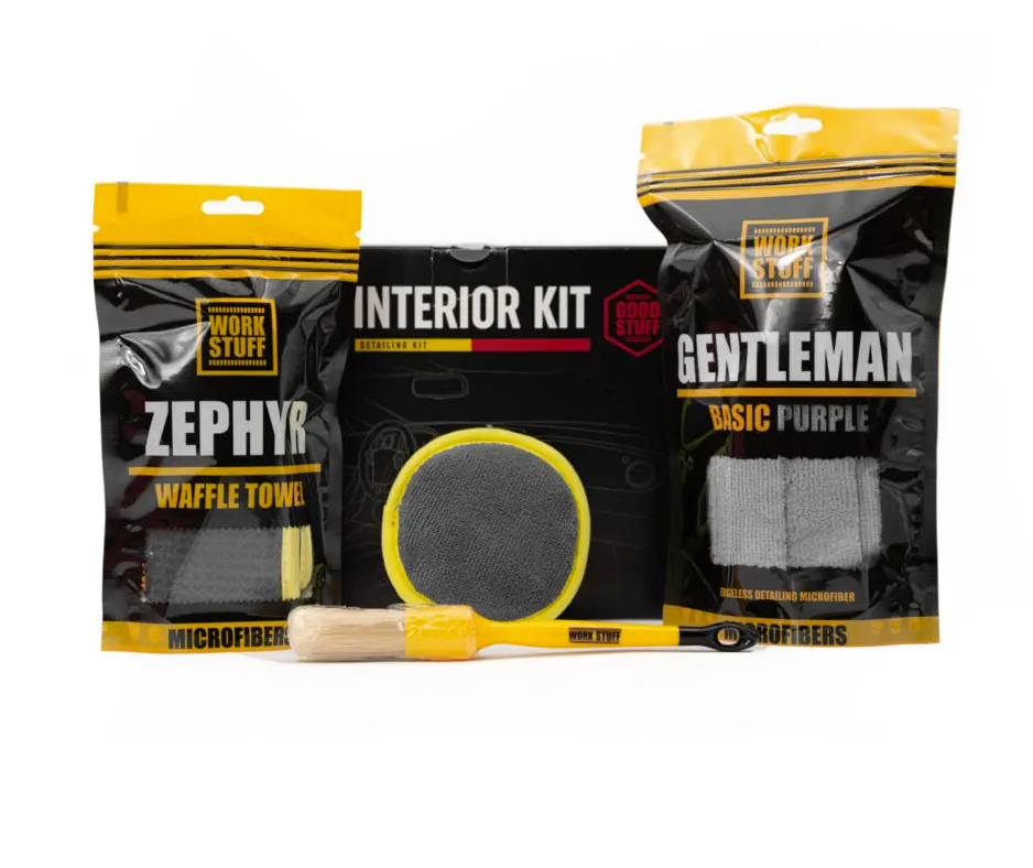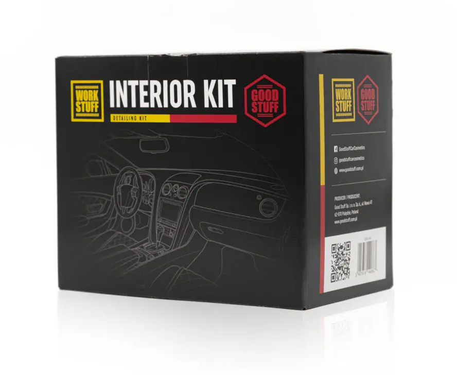 Good Stuff Interior Kit je základná sada na údržbu interiéru automobilu. V špeciálne pripravenom boxe nájdete 7 produktov starostlivosti o interiér vozidla (3 produkty od Good Stuff a 4 potrebné doplnky od značky Work Stuff). Pomocou tohto príslušenstva v sade môžete vyčistiť plasty, gumové prvky a palubnú dosku a aplikovať špeciálnu ochranu.