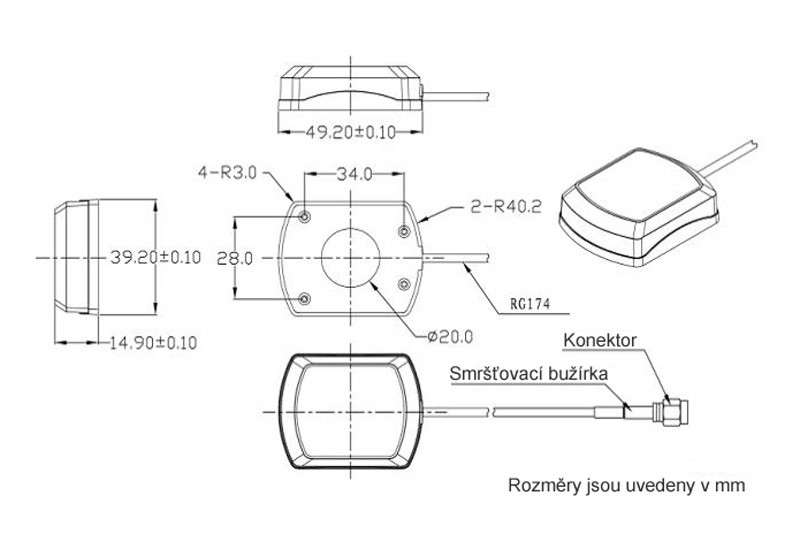 - konektor GPS zariadenia: MCX-A konektor samec priamy