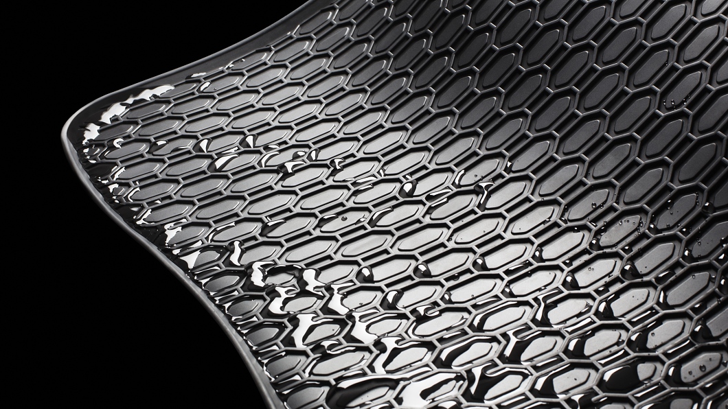 - Moderný "Honeycomb" voštinový vzor zabraňuje pohybu a rozliatiu vody a nečistôt.