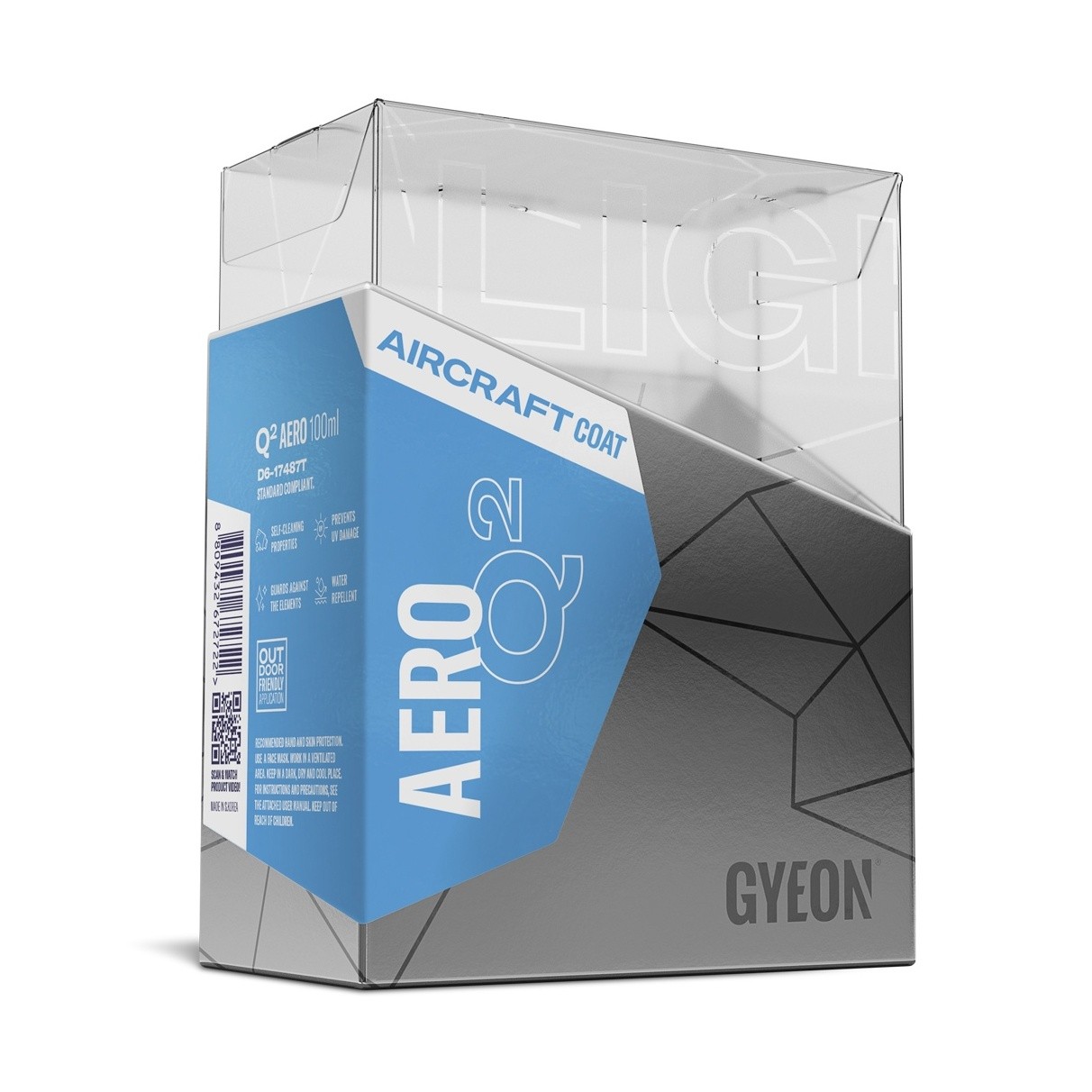 Gyeon Q² Aero je ultimátny keramický povlak koncipovaný pre lietadlá, ktorý sa v porovnaní s bežnými dopravnými prostriedkami používa v extrémnych podmienkach. Vystavenie UV žiareniu alebo vysokým výkyvom teplôt sú v úplne inom meradle, preto Gyeon predstavil svoj keramický povlak pre lietadlá. Ide o extrémne silné jednovrstvové riešenie určené pre lietadlá, ktoré poskytuje vysokú úroveň ochrany proti korózii alebo zmene farby laku. Q² Aero prešlo rozsiahlym testovacím postupom podľa štandardu Boeing D6-17487T v testovacom zariadení so sídlom v USA a splnilo všetky kritériá tohto štandardu. Toto schválenie robí produkt bezpečným pre použitie vo všetkých lietadlách a na veľkých komerčných i súkromných tryskáčoch alebo vrtuľníkoch.