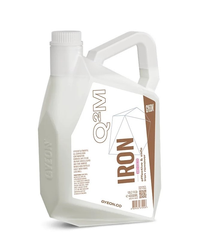 Gyeon Q²M Iron je jedným z najúčinnejších a najrýchlejšie pôsobiacich odstraňovačov hrdze na trhu. Tento výrobok bol špeciálne vyvinutý na dekontamináciu povrchov znečistených železom, ako je brzdový prach a poletujúca hrdza. Q²M Iron pôsobí tak intenzívne, že čistenie je jednoduché pre profesionálnych detailerov aj pre nadšencov detailingu. Q²M Iron je vhodný na chemickú dekontamináciu ihneď po umytí. Používajte na studené povrchy a vyhnite sa aplikácii na priamom slnečnom svetle. V horúcich dňoch nenechávajte prípravok zaschnúť na povrchu. Q²M Iron je veľmi klzký a ideálny ako mazivo pri dekontaminácii hlinou. To môže ešte viac urýchliť a zintenzívniť proces dekontaminácie. Vysoká reaktivita výrobku nemá vplyv na jeho pH. Vďaka neutrálnemu pH sa Q²M Iron môže používať na všetky povrchy, dokonca aj na také citlivé povrchy, ako sú leštené kolesá. Nepoškodzuje gumové tesnenia ani strechy kabrioletov. Q²M Iron bol vyvinutý tak, aby poskytoval čo najširší rozsah použitia, môžete ho bezpečne použiť aj na veľmi citlivé materiály. Silný efekt fialového zafarbenia látky je veľmi presným indikátorom toho, koľko nečistôt sa nahromadilo. (Zafarbenie je len ilustračné, aby informovalo používateľa o skutočnom znečistení a sile reakcie).