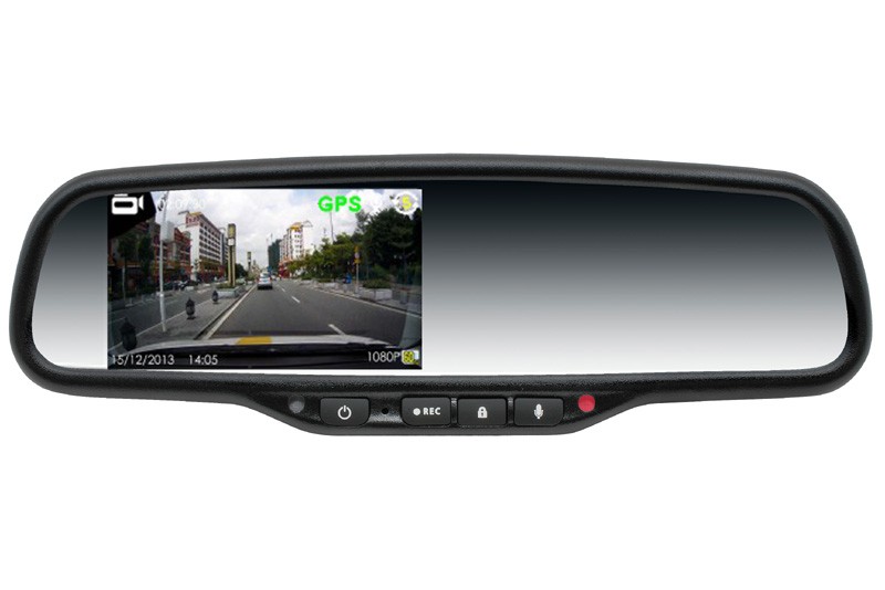 Kamera je umiestnená v prednej časti spätného zrkadla tak, aby monitorovala situáciu pred vozidlom. Záznam obrazu a zvuku z tejto kamery je nahrávaný na SD kartu, ktorá je umiestnená v slote v hornej časti spätného zrkadla. Záznam je nahrávaný v slučke po jednotlivých blokoch súčasne s informáciou o dátume a čase obstarania. Zariadenie umožňuje zobrazenie spätnej parkovacej kamery po zaradení spiatočky. Táto kamera nie je súčasťou balenia.
