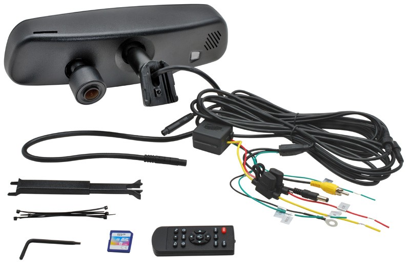 Kamera je umiestnená v prednej časti spätného zrkadla tak, aby monitorovala situáciu pred vozidlom. Záznam obrazu a zvuku z tejto kamery je nahrávaný na SD kartu, umiestnenú v slote v hornej časti spätného zrkadla. Záznam je nahrávaný v slučke po jednotlivých blokoch súčasne s informáciou o dátume a čase obstarania. Zariadenie umožňuje zobrazenie spätnej parkovacej kamery po zaradení spiatočky. Táto kamera nie je súčasťou balenia.