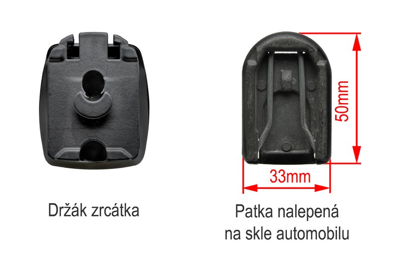 Spätné zrkadlo s vysoko kvalitnou zrkadlovou plochou nahrádza OEM spätné zrkadlo automobilu. Pomocou špeciálneho držiaka je možné inštalovať na pätku nalepenú na prednom skle.