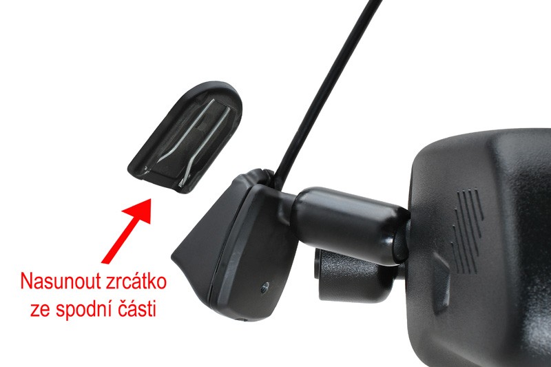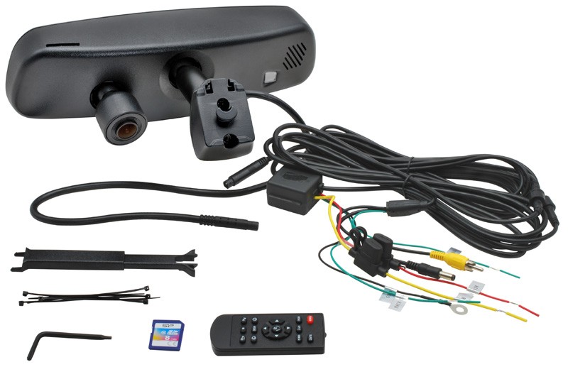 Kamera je umiestnená v prednej časti spätného zrkadla tak, aby monitorovala situáciu pred vozidlom. Záznam obrazu a zvuku z tejto kamery je nahrávaný na SD kartu umiestnenú v slote v hornej časti spätného zrkadla. Záznam je nahrávaný v slučke po jednotlivých blokoch súčasne s informáciou o dátume a čase obstarania. Zariadenie umožňuje zobrazenie spätnej parkovacej kamery po zaradení spiatočky. Táto kamera nie je súčasťou balenia.