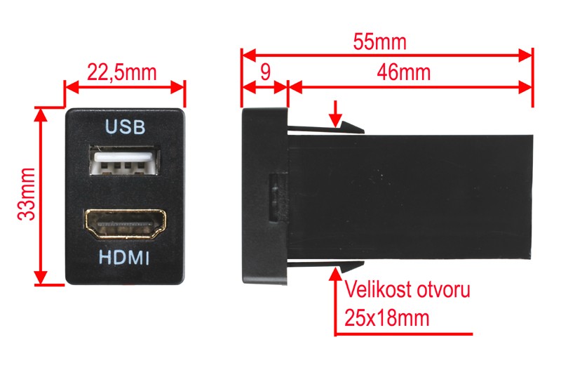 - Adaptér na pripojenie HDMI a USB konektora pri použití aftermarket (dodatočne) inštalovaného autorádia s výstupom HDMI.