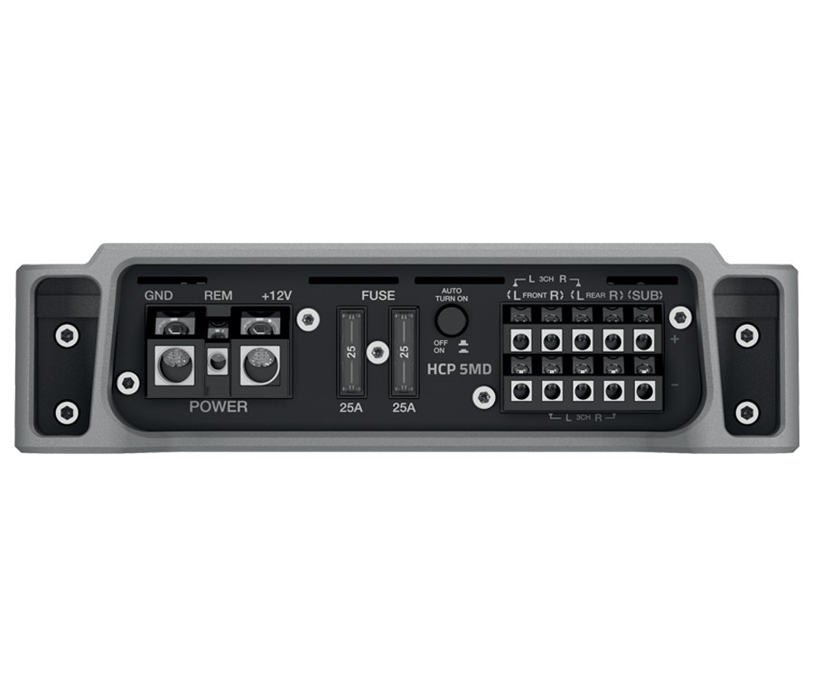 Námorný zosilňovač HCP 5 MD 24V sa vyznačuje kompaktným dizajnom pripraveným čeliť prostrediu otvorenej vody a poskytuje množstvo čistej energie. Chladič HCP M bol vyrobený z extrudovaného hliníka, materiálu, ktorý nemá konkurenciu pre ľahkosť, robustnosť a odvod tepla. Aby sa veľkosť udržala na minime, sú výkonové tranzistory umiestnené medzi dosku plošných spojov a hornú stranu chladiča, kde sa zhromažďuje teplo. Nahromadené teplo je potom smerované do špeciálnych rozptylových „krídiel“ po strane zosilňovača. Vstupy Pre-In aj Speaker-In majú špeciálne vyvážený obvod, ktorý zaisťuje vysokú odolnosť proti elektromagnetickému rušeniu pre výsledky bez šumu. Deliaca sekcia zosilňovačov HCP M zaisťuje extrémnu flexibilitu: plne nastaviteľné Lo-pass, Hi-pass filtre s 12 dB/Oct. a 24 dB/október sklony podľa modelu zosilňovača; Bass Boost je tiež k dispozícii na vylepšenie nízkych frekvencií. Presnejšie povedané, HCP 5 MD 24V ponúka Hi-Pass predzosilňované výstupy, ktoré umožňujú vytvoriť pásmovú priepust na prednom basovom reproduktore.| Katalógové číslo | HCP 5 MD 24V |