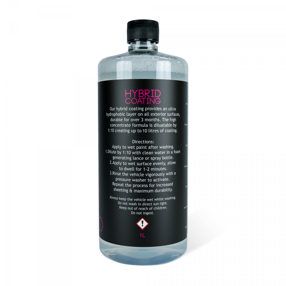 Revolučný Hybrid Coating je ultra-hydrofóbny sealant, ktorý je možné aplikovať mnohými spôsobmi. Vysoko koncentrované zloženie je riediteľné 1:10, čím vzniká 5 litrov prostriedku z 500 ml fľaše alebo 10 litrov z litrovej fľaše. Sealant je možné aplikovať na lak, sklo, kolesá a plasty, poskytuje ultra-hydrofóbne ochranné vlastnosti. Výdrž sealantu je viac ako 3 mesiace.
