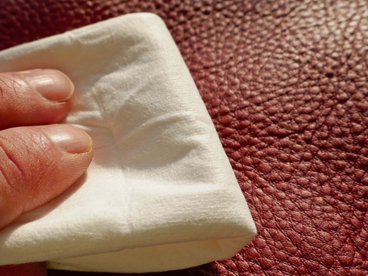 - Naneste prostriedok na mäkkú čistú handričku a rovnomerne ho naneste na vopred očistený povrch usne.