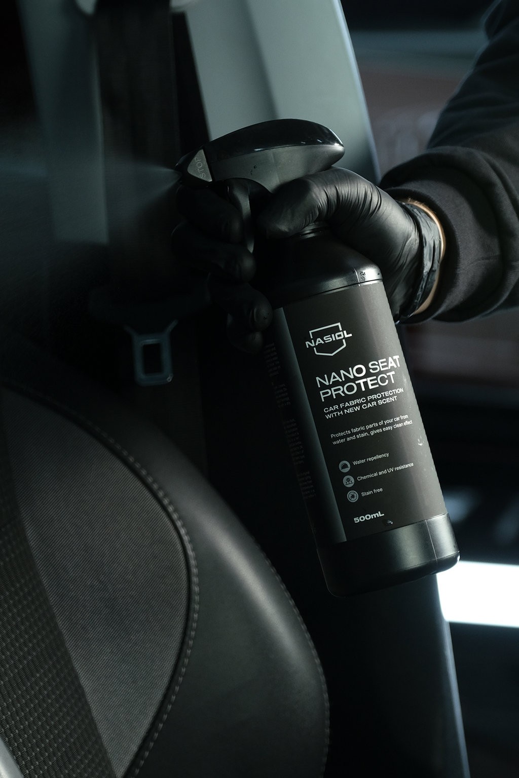 Nasiol NANO SEAT impregnačný ochranný sprej na textilné autosedačky. Vytvorí nano keramický povlak na látkovom povrchu, ktorým ochráni sedadlá vášho vozidla pred znečistením (napr. rozliatymi nápojmi, mokrým oblečením) a zároveň ponúka sviežu vôňu ako bonus. Zaistí dlhotrvajúci efekt až na 4 mesiace.