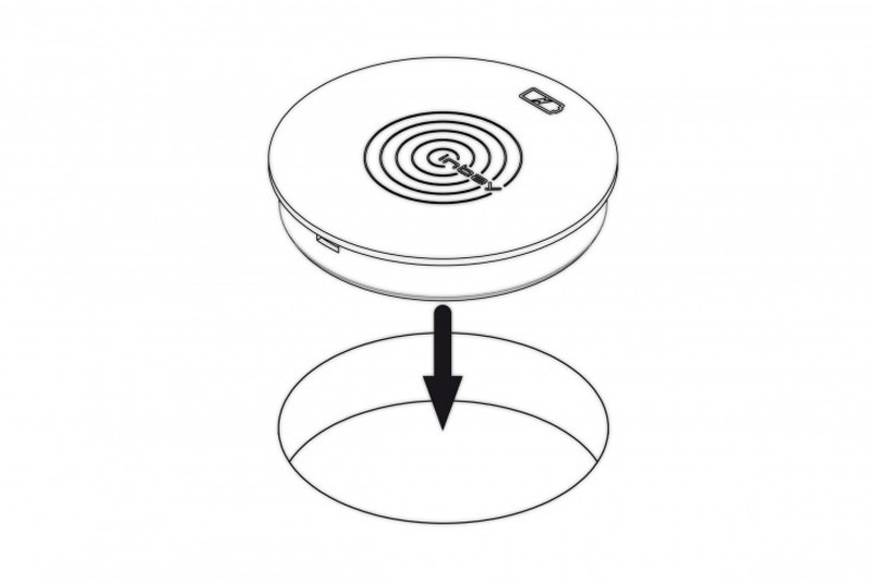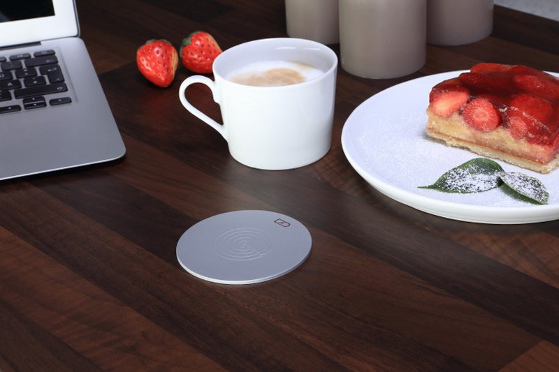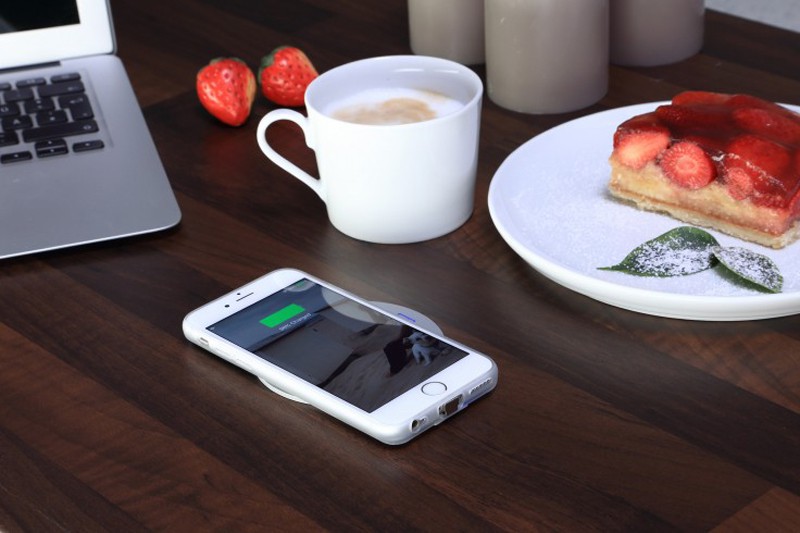 Inbay® Wireless Qi - indukčná stolová nabíjacia stanica pre mobilné telefóny kompatibilné s nabíjaním Qi nainštalovaná v otvore na doske.