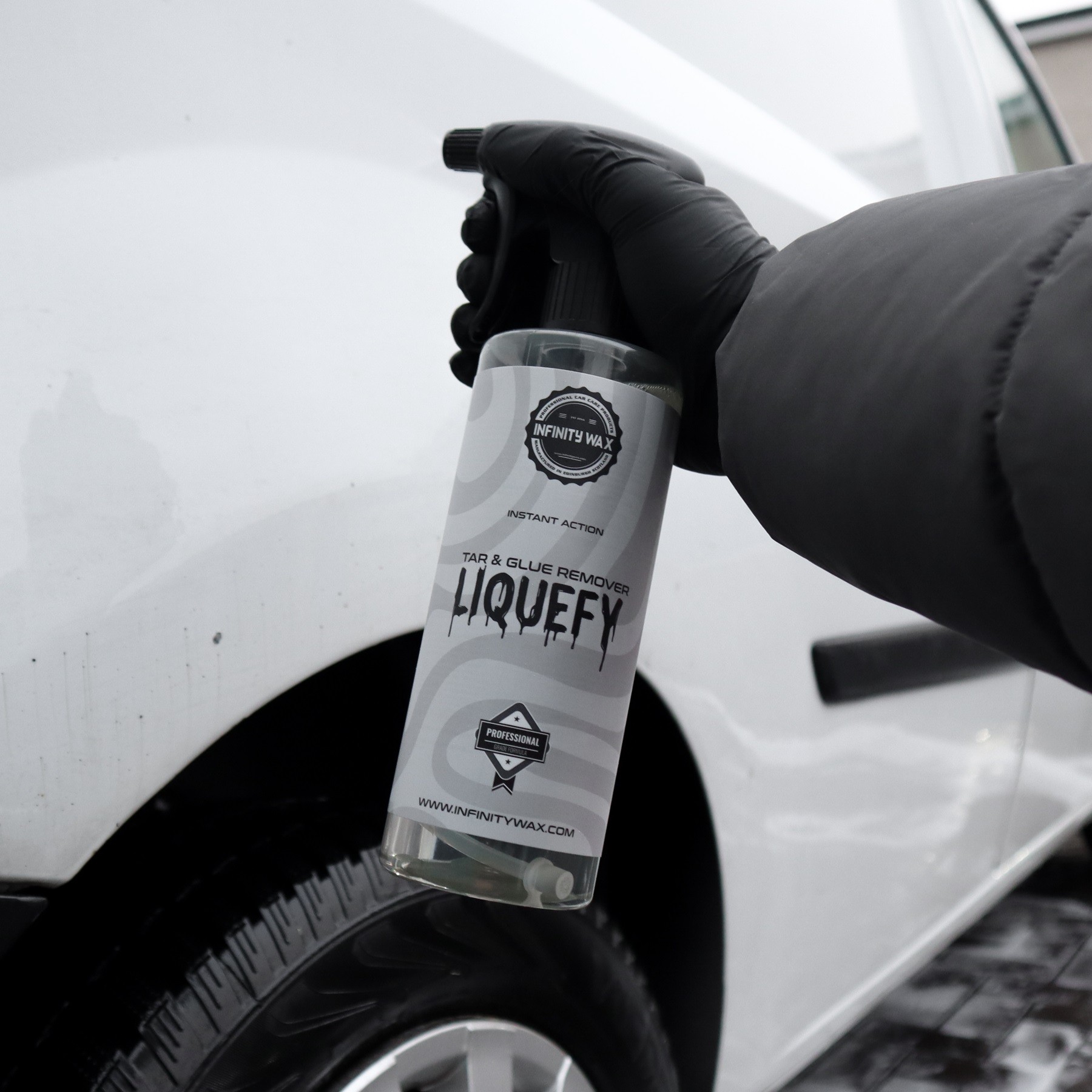 Liquefy Tar and Glue Remover je vysoko účinný odstraňovač asfaltových škvŕn a lepidiel na báze rozpúšťadiel, ktorý rýchlo rozkladá naviazaný decht a lepidlo a umožňuje ich bezpečné odstránenie z povrchu. Prípravok rýchlo rozkladá tieto nečistoty a umožňuje ich buď opláchnuť, alebo odstrániť handričkou z mikrovlákna. Určené len na použitie na laku a skle automobilu. Vyhnite sa kontaktu s holým kovom, hliníkom a nelakovanými plastmi. Nepoužívajte v interiéri vozidla! Liquefy vždy aplikujte v dobre vetranom prostredí! Pri používaní chemikálií vždy používajte ochranné rukavice a zabráňte kontaktu s holou pokožkou.