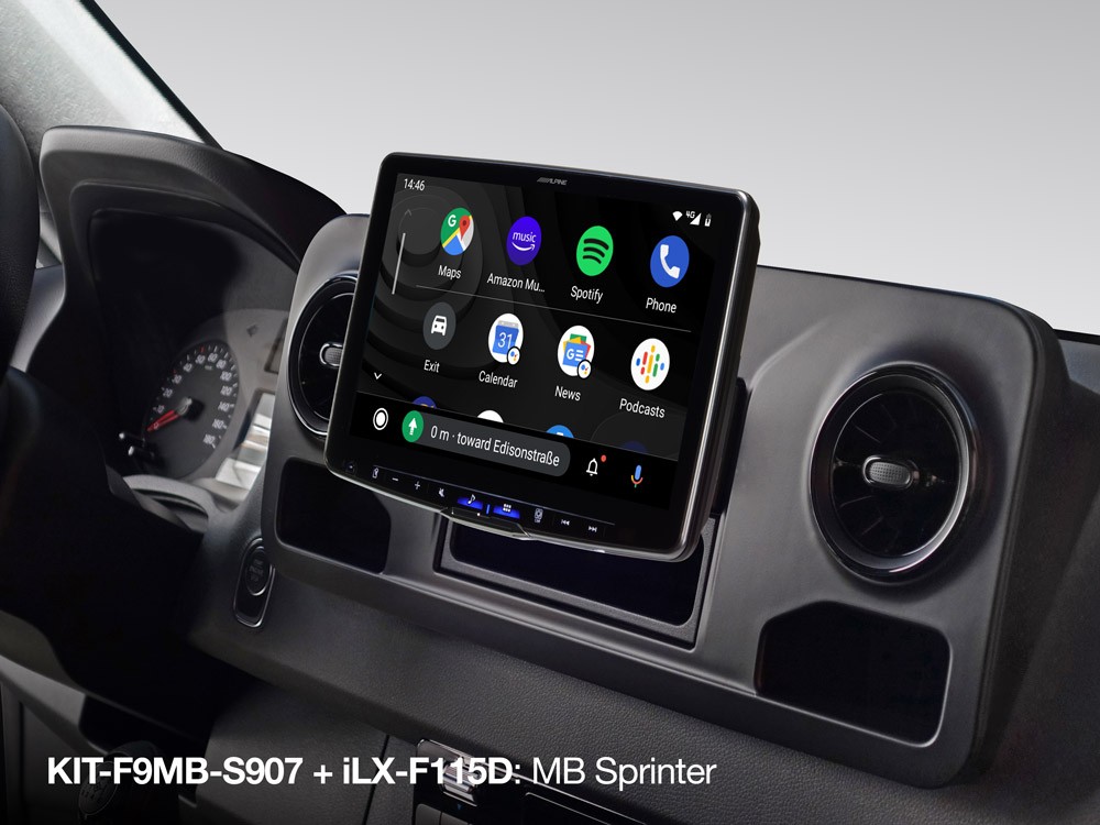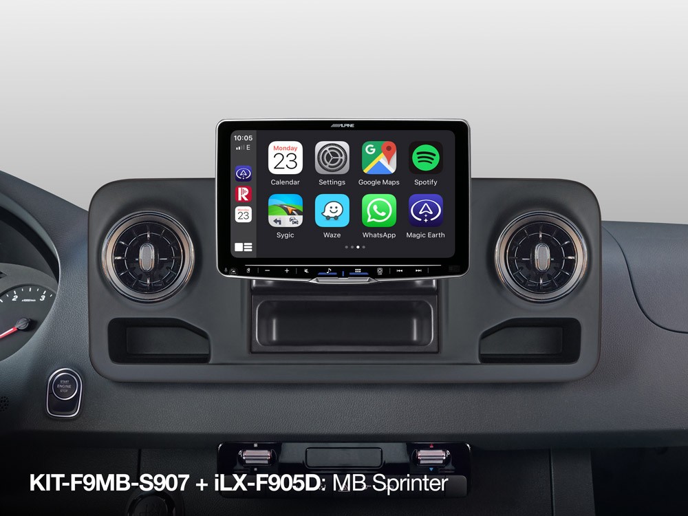 Táto inštalačná sada umožňuje jednoduchú a čistú inštaláciu Alpine Halo11 (iLX-F115D), Halo9 (iLX-F905D, iLX-F903D) alebo Alpine Halo9 Navi (INE-F904D / INE-F904DC) do Mercedes Sprinter 907 (VS 30) 2018. KIT-F9MB-S907 obsahuje rám na mieru, káblový zväzok s rozhraním CAN a anténny adaptér. Táto sada je kompatibilná so Sprintermi s 1 DIN rádiom (E1D), vozidlá s prípravou na rádio (ER0) potrebujú navyše adaptér KWE-S907.O značke