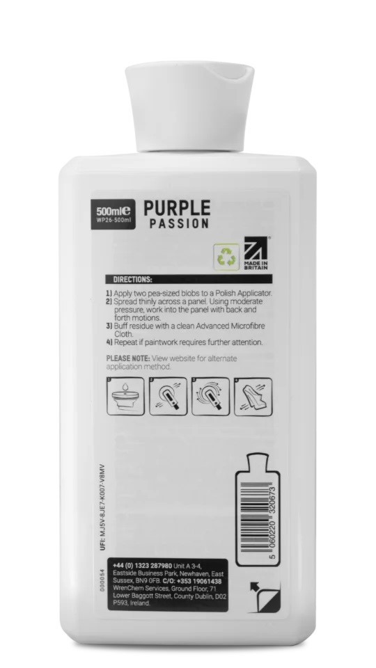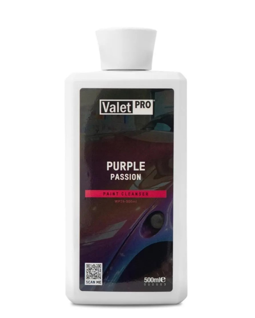 Vo ValetPRO strávili viac ako rok vývojom a zdokonaľovaním zloženia leštidla Purple Passion. Vytvorili ľahko použiteľný čistiaci prostriedok na lak, ktorý bez námahy odstráni jemné poškodenie z povrchu laku a pritom zanechá vysoko lesklý a hladký povrch. Ide o dokonalý čistič pred nanesením vosku, ktorý vytvára dokonalý základ pre vosky Mad Wax alebo Beading Marvelous. Tento prípravok navyše neskutočne pekne vonia.