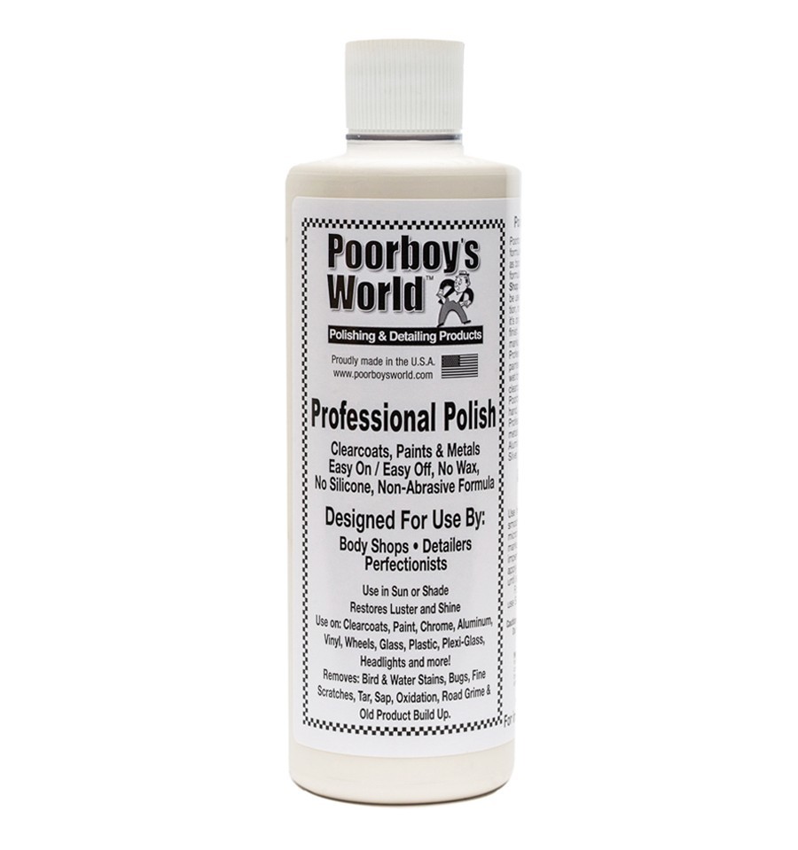 Profesionálne leštidlo Poorboy's je veľmi všestranný pomocník. Ide o skvelý čistič lakovaných povrchov, kovu, skla, plastu, plexiskla alebo šošoviek svetlometov. Neobsahuje silikón ani vosky. Poorboy's Proffesional Polish je ideálny ako posledný krok pri príprave povrchu pred aplikáciou vosku alebo sealantu. Poorboy's Proffesional Polish redukuje nedokonalosti, ako sú mikroškrabance a škvrny od vody, obnovuje čistotu povrchu a navracia maximálny lesk.
