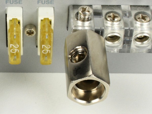 - Káblová redukcia pre napájací kábel max. 1 x 21,4 mm² na 1 x 9,6 m².
