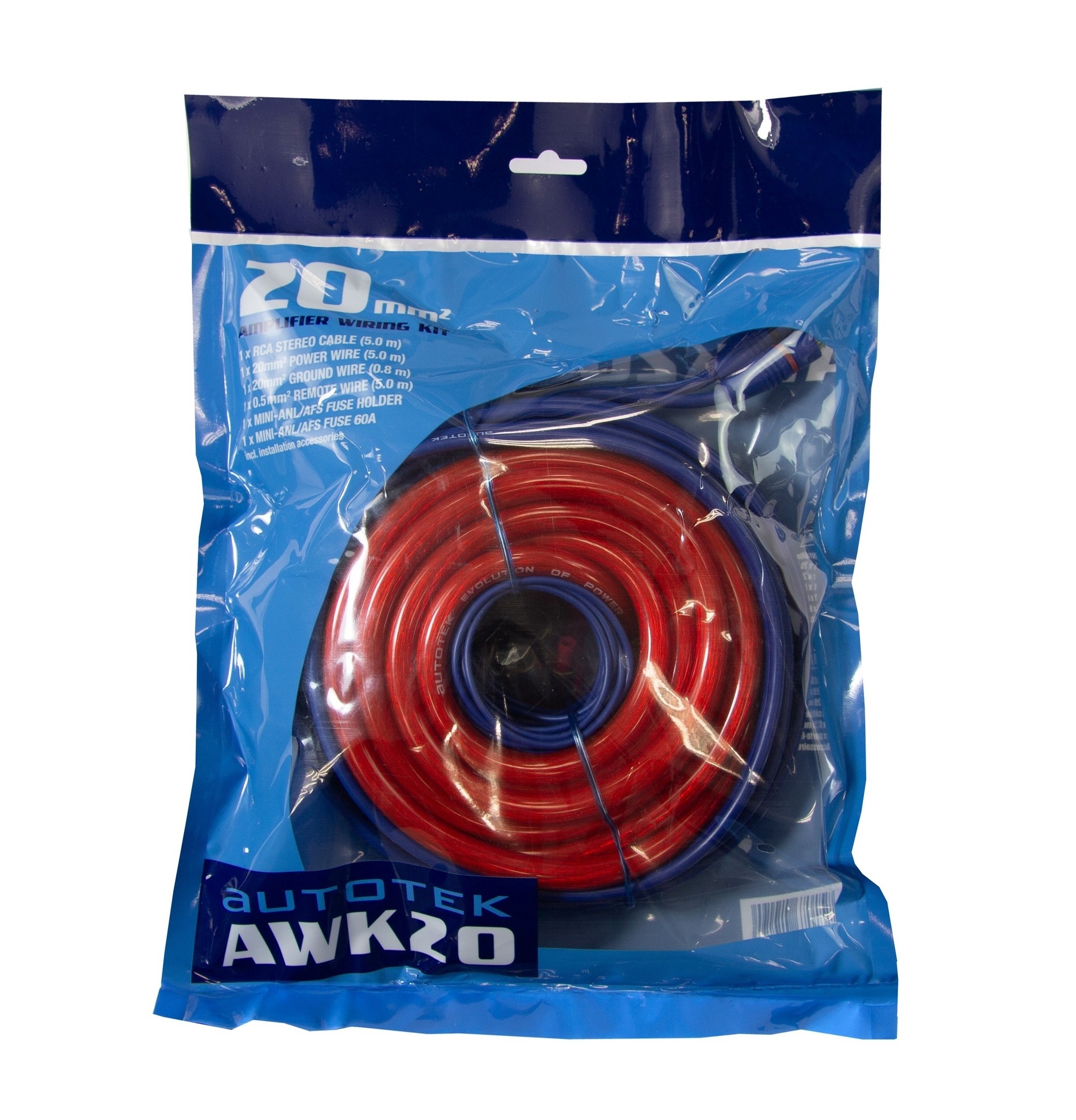 káblová sada, 20 mm² napájací + zemniaci CCA kábel, RCA, poistkové púzdro, príslušenstvo