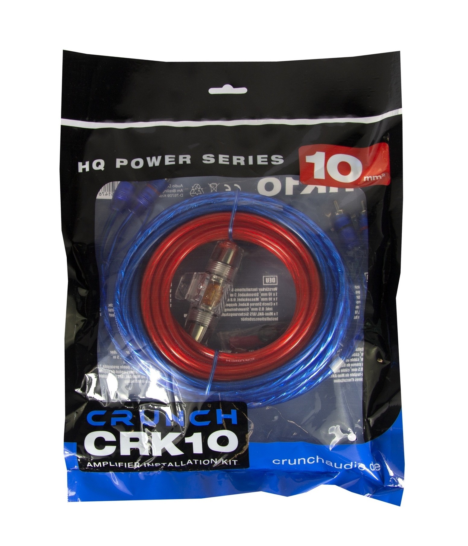 káblová sada, 10 mm² napájací + zemniaci CCA kábel, RCA, poistkové púzdro, príslušenstvo