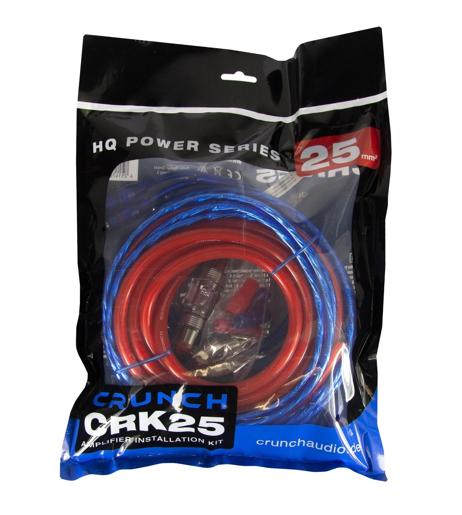 káblová sada, 25 mm² napájací + zemniaci CCA kábel, RCA, poistkové púzdro, príslušenstvo