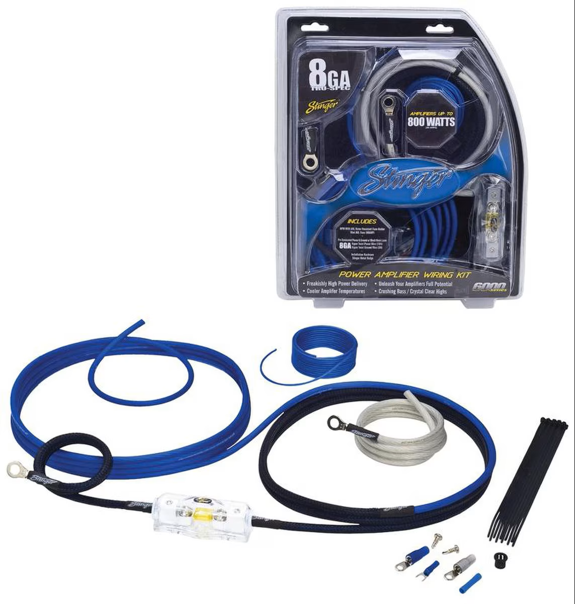 Vysoko kvalitná prémiová napájacia sada s napájacím káblom s prierezom 8,4 mm² na inštaláciu zosilňovača do výkonu 800 W max. Káblové sady Stinger patria jednoznačne k tomu najlepšiemu, čo sa dá dnes zaobstarať.