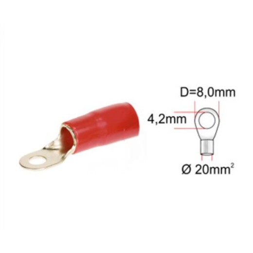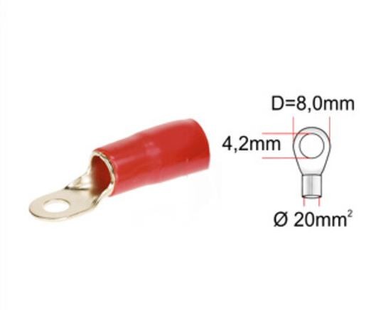 káblové oko pre kábel 20 mm², červená izolácia, 4,2 mm otvor