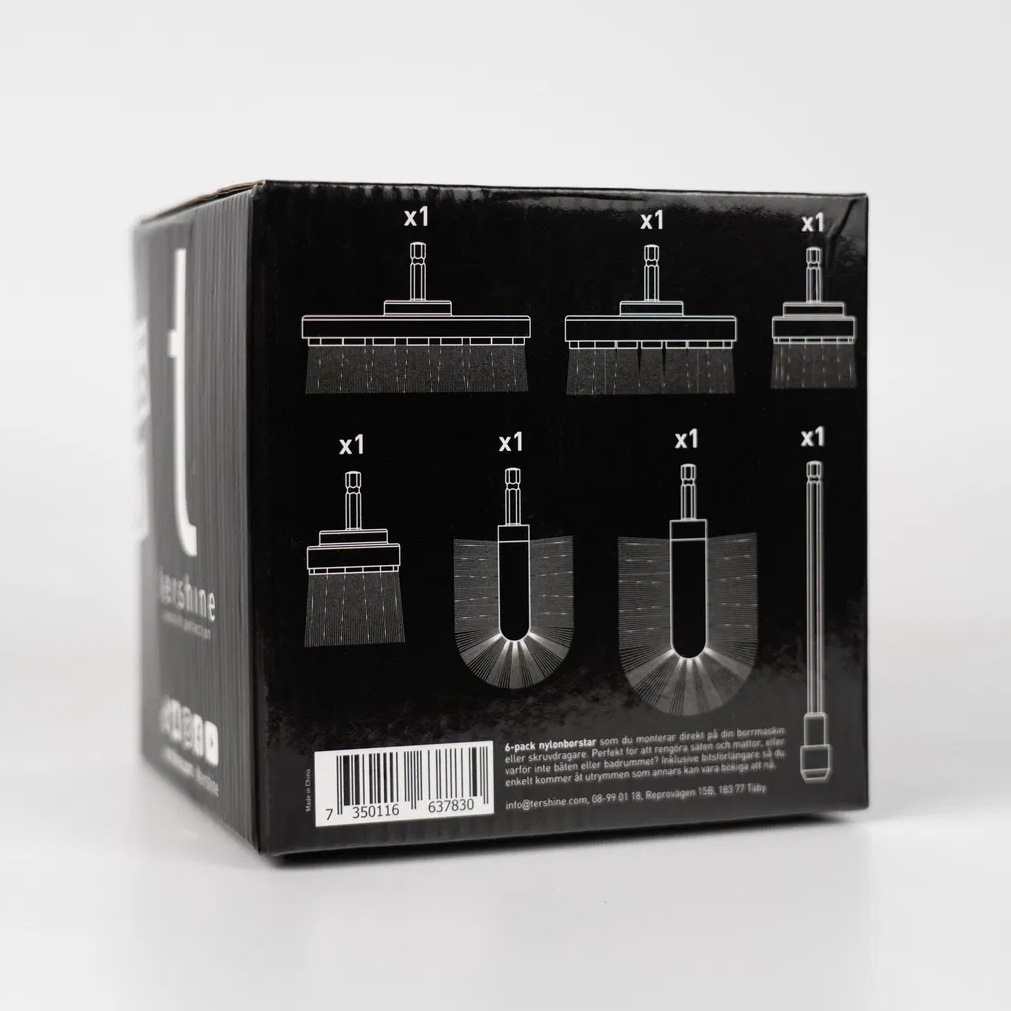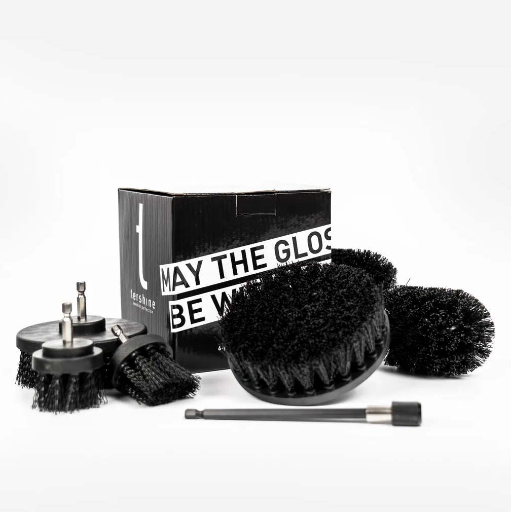 Balenie 6 nylonových kefiek, ktoré je možné namontovať priamo na vŕtačku alebo aku skrutkovač. Perfektný nástroj na čistenie sedadiel alebo kobercov. Sada obsahuje 15 cm nadstavec (bit), ktorý vám umožní prístup do miest, ktoré by inak mohli byť ťažko dostupné. Skvelé kombo spolu s univerzálnym čističom Tershine APC, ale aj v domácnosti alebo spolu s Tershine Extract na odolné nečistoty napr. na balkóne/fasáde/lodi atď.