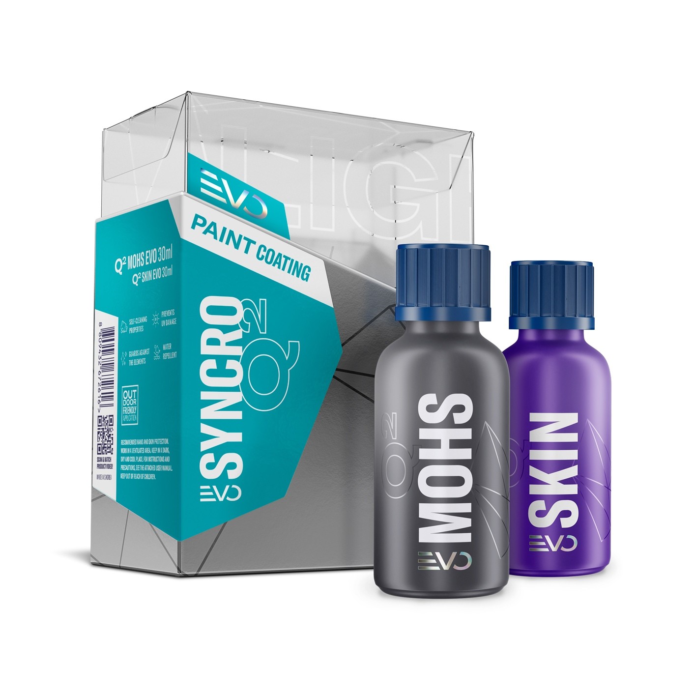 Sada Gyeon Q² Syncro EVO je tzv. "druhá koža" pre lak vášho auta. Je to pokročilý, dvojstupňový set keramických povlakov novej generácie, ktorý je zložený z keramického povlaku Gyeon Q² Mohs EVO a Gyeon Q² Skin EVO. Gyeon Q² Mohs EVO je legendárny, znovuzrodený keramický povlak, ktorý bol od základu prepracovaný a predstavuje tak teraz svetovo prvý keramický povlak s použitím technológie fluórom modifikovanej polysilazanovej formulácie v automobilovom priemysle. Modifikácia polysilazanov v prekurzorových fázach prináša obrovské výhody na všetkých úrovniach - trvanlivosť, chemickú odolnosť alebo jednoduchú aplikáciu, ktorá je úžasne jednoduchá, a napriek tomu je ochrana extrémne chemicky odolná. Gyeon Q² Skin EVO je vrchný povlak, ktorý následne výrazne zvyšuje lesk, farebné podanie tmavých farieb a odolnosť hydrofóbneho efektu. Všetky nové keramické ochrany EVO od Gyeonu je možné aplikovať vonku, samozrejme za predpokladu ideálnych podmienok, ako je sucho, relatívne bezvetrie a tieň.