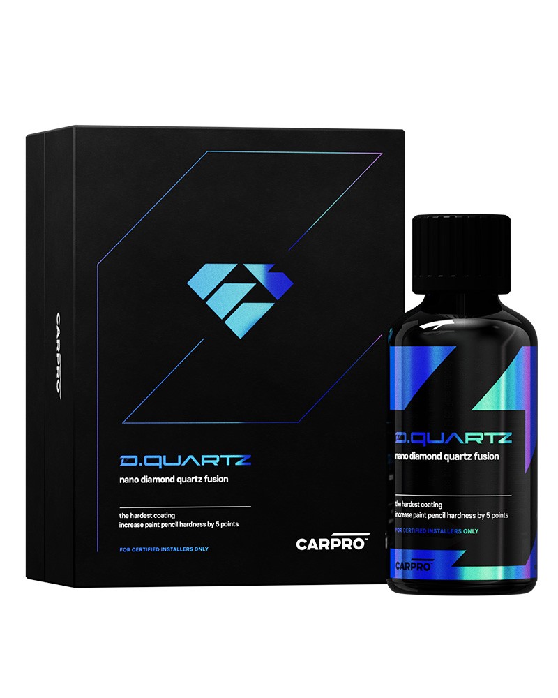 V snahe o dokonalosť v CarPro vyvinuli skutočne inovatívny produkt, ktorého zloženie je založené na siloxanovej nano-diamantovej fúzii a patentovanej silikónovej živici, vďaka čomu je DQuartz vôbec prvým povlakom, ktorý ponúka mechanickú odolnosť voči bežným hologramom a poškriabaniu. Okrem vylepšenia tvrdosti sa vyznačuje vysokou chemickou odolnosťou a odolnosťou voči životnému prostrediu a tiež (najväčšou pýchou CarPro) leskom a samočistiacou vlastnosťou. Počas testovania v CarPro zistili, že DQuartz skutočne exceluje ako základný povlak s hlavným povlakom CQuartz Professional, ktorý zvyšuje tvrdosť o ďalší bod a prináša do zmesi vynikajúci výkon CQ Professional. DQuartz je k dispozícii výhradne certifikovaným detailerom. (Model DQuartz GO je určený aj pre bežných užívateľov.)