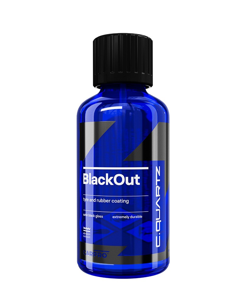 Prípravky na ošetrenie pneumatík patria k tým, ktoré sa najviac stretávajú s krátkou životnosťou a často nevydržia dlhšie ako do prvého dažďa. Firma CarPro konečne prináša riešenie tohto problému v podobe pokrokového produktu na ošetrenie pneumatík, ktorý nevydrží dni či týždne, ale celé dlhé mesiace. CarPro BlackOut je unikátny prípravok na ošetrenie pneumatík, ktorý využíva najmodernejšiu technológiu anorganických materiálov známych z keramických ochrán laku, v kombinácii s akrylovou živicou. Táto technológia prináša trvanlivosť a odolnosť, ktorá je na míle vzdialená tradičným prípravkom na báze silikónov. CarPro BlackOut odoláva vode, blatu, soli, oteru aj opakovanému umývaniu. Odoláva dokonca aj agresívnym čističom a drhnutiu kefou. Nedegraduje vplyvom UV žiarenia a oxidácie. Ošetrené pneumatiky získajú luxusný zamatový vzhľad a sýto čiernu farbu. Nie sú však neprirodzene lesklé a v žiadnom prípade nie sú mastné alebo lepkavé. CarPro BlackOut vytvára vždy 100% suchý povrch, ktorý odpudzuje vodu, prach alebo blato. Pneumatiky sú tak chránené pred znečistením, majú samočistiacu schopnosť a veľmi ľahko sa udržuje ich perfektný vzhľad. Sú chránené pred UV žiarením a ozónom, ktoré spôsobujú starnutie, blednutie a praskanie. CarPro BlackOut je skvelý pomocník nielen na ošetrenie pneumatík, ale aj na všetky ostatné gumové diely. S CarPro BlackOut dáte zbohom vyblednutým a fľakatým tesnením okolo okien, ktoré kazia inak perfektný vzhľad vášho vozidla. Prípravok je možné použiť aj na regeneráciu a ochranu nelakovaných plastových dielov. Použite ho na hadice a plastové diely v motorovom priestore, ktoré potom vydržia dlho krásne, a nebudú sa toľko špiniť.