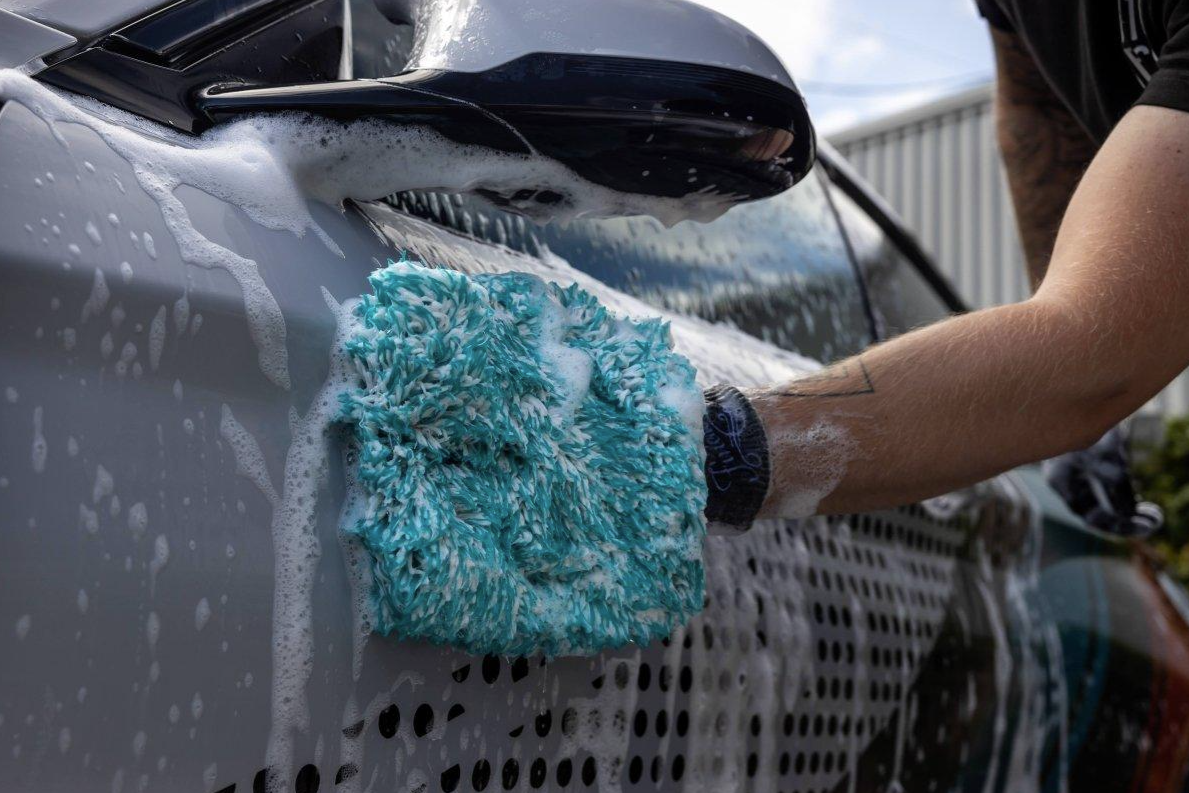 - Mikrovláknovou umývacou rukavicou naberte zmes vody so šampónom a rovnými pohybmi umyvajte karosériu smerom zhora nadol.