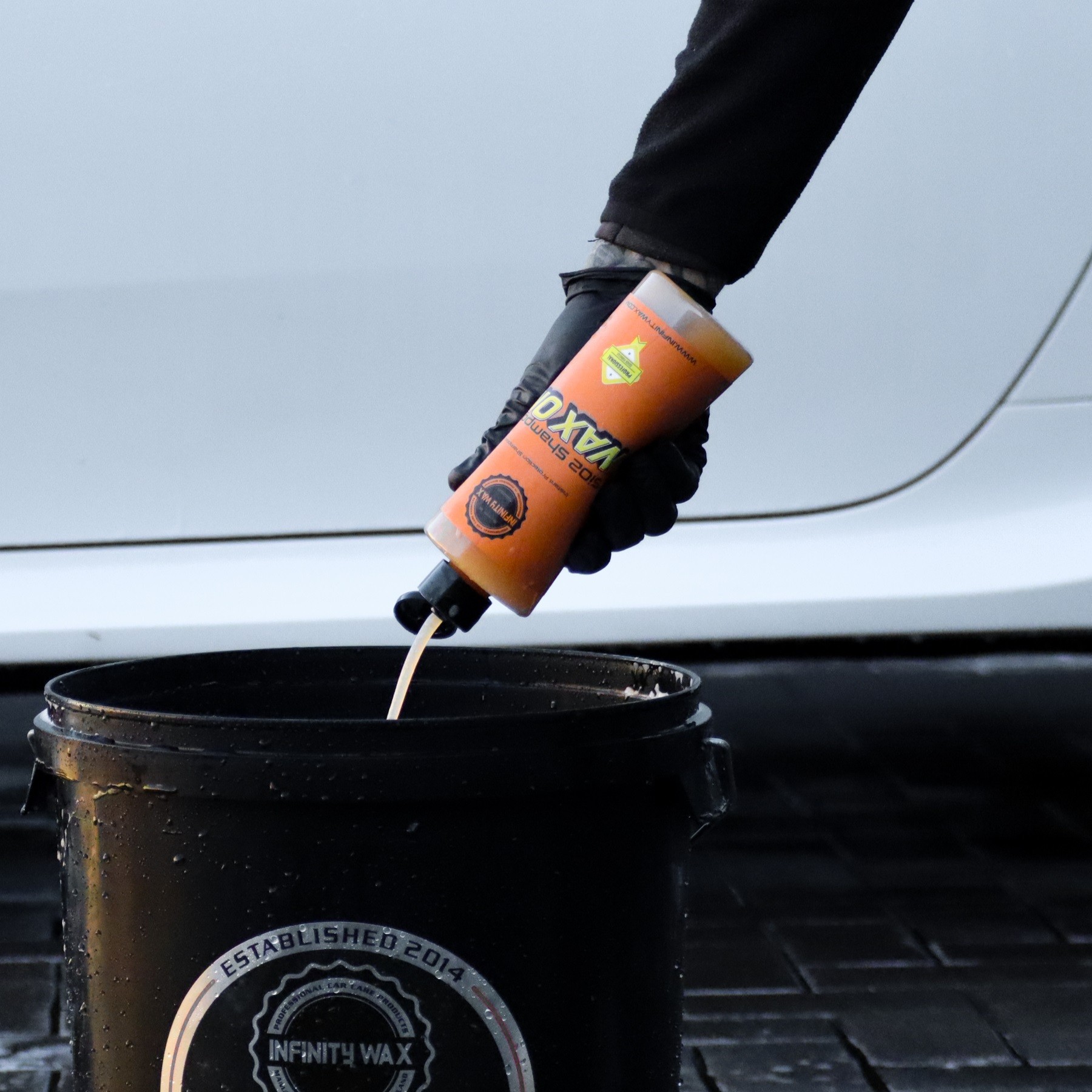 Infinity Wax - WAX ON Shampoo je prvý keramický šampón od Infinity Wax s vôňou pomarančového nápoja Fanta, ktorý poskytuje hustú penu a ochranu vďaka kremíku Si02. Okrem toho tento šampón ponúka úžasné hydrofóbne vlastnosti bez potreby ďalších krokov, ako je napríklad nanášanie ďalšej samostatnej ochrany. Jednoducho umyte svoje vozidlo týmto šampónom ako zvyčajne a očakávajte, že v daždi uvidíte na karosérii len pôsobivé "guľôčky". WAX ON obsahuje jemné, pH neutrálne povrchovo aktívne látky pochádzajúce z cukrovej trstiny, vďaka čomu je výrobok úplne udržateľný a zároveň šetrný k vozidlu a pokožke používateľa. Šampón obsahuje silnú emulziu živice Si02. Tá dodá aj tomu najzanedbanejšiemu laku úžasný lesk a zároveň zabezpečí ochranu pred znečistením. WAX ON vám umožní jednoducho umyť vozidlo a zároveň mu dodá ochranu. Je to samozrejme úspora času, ale aj spoľahlivý spôsob údržby vášho vozidla počas chladnejších mesiacov. Prípravok WAX ON zvyčajne vydrží niekoľko týždňov, kým sa ochrana vyčerpá, takže sa na jeho účinnosť môžete spoľahnúť.