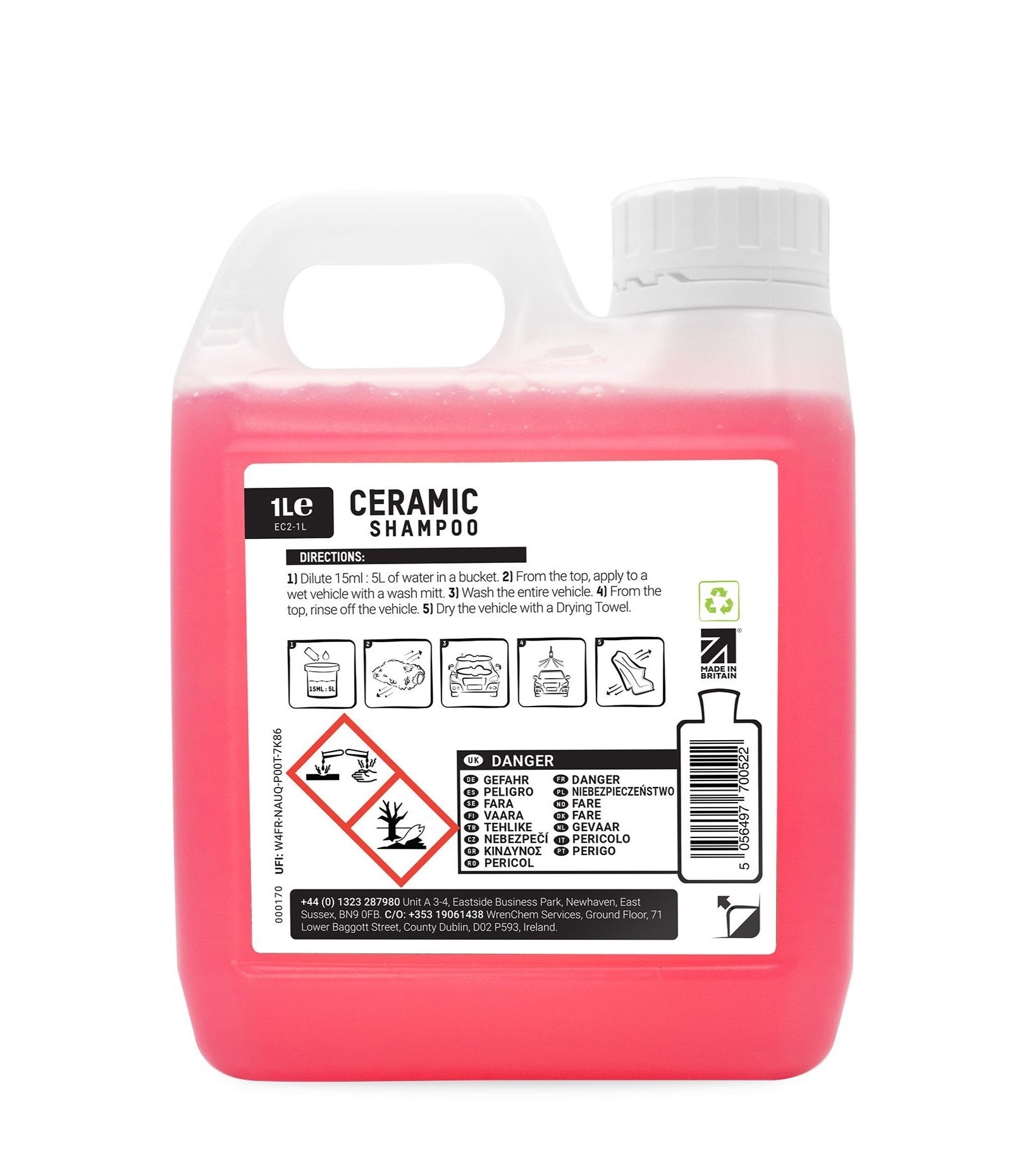 Keramický šampón ValetPRO bol vyvinutý s použitím luxusných lubrikačných penivých látok. Umožní vašej umývacej rukavici bez námahy kĺzať po povrchu laku vášho vozidla a zabezpečí fantastický čistiaci výkon. Aktívne zložky tiež zvyšujú lesk a udržiavajú vodoodpudivosť medzi pravidelnými umývaniami. Ochranná keramická vrstva šampónu ValetPRO Ceramic Shampoo sa rýchlo a rovnomerne nanáša, čo umožňuje ľahké opláchnutie vody a čistiaceho prostriedku, čím sa zlepšuje proces schnutia vozidla. Riedi sa v pomere 15 ml šampónu na 5 litrov vody.