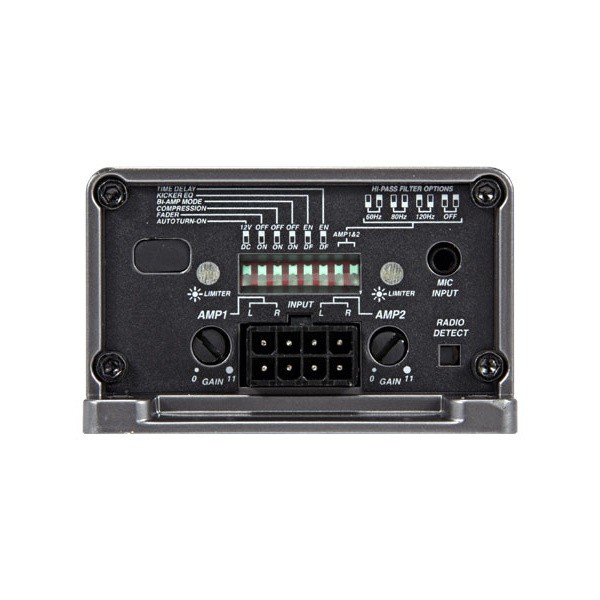 V nových inovatívnych zosilňovačoch KEY od spoločnosti KICKER® je zabudovaný výkonný DSP čip, ktorý zaisťuje výrazné zlepšenie zvuku, pokiaľ ide o reálne počúvanie a scénu v každom vozidle. Jednoducho stlačte prepínač pre automatickú kalibráciu a mikrofón sa postará o zvyšok. To, čo zvyčajne trvá hodiny profesionálnej práce, je možné vykonať za pár minút. Výkonný 40pásmový ekvalizér a výhybky DSP 24 dB zlepšujú tonalitu každého reproduktora. Okrem neuveriteľne dobrej kvality zvuku je možné zosilňovač nainštalovať takmer kamkoľvek - či už bude za rádiom, pod sedadlom alebo v kufri.