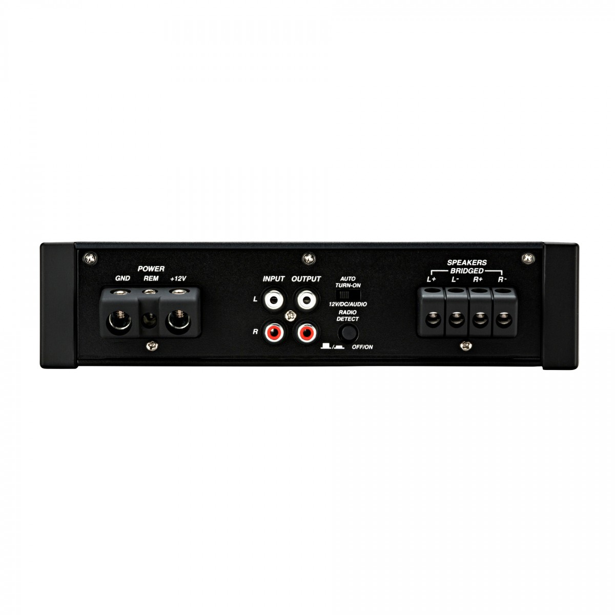 2-kanálový zesilovač, 2 x 100 / 1 x 400 na 4 Ω / 2 x 200 W RMS na 2 Ω, třída D