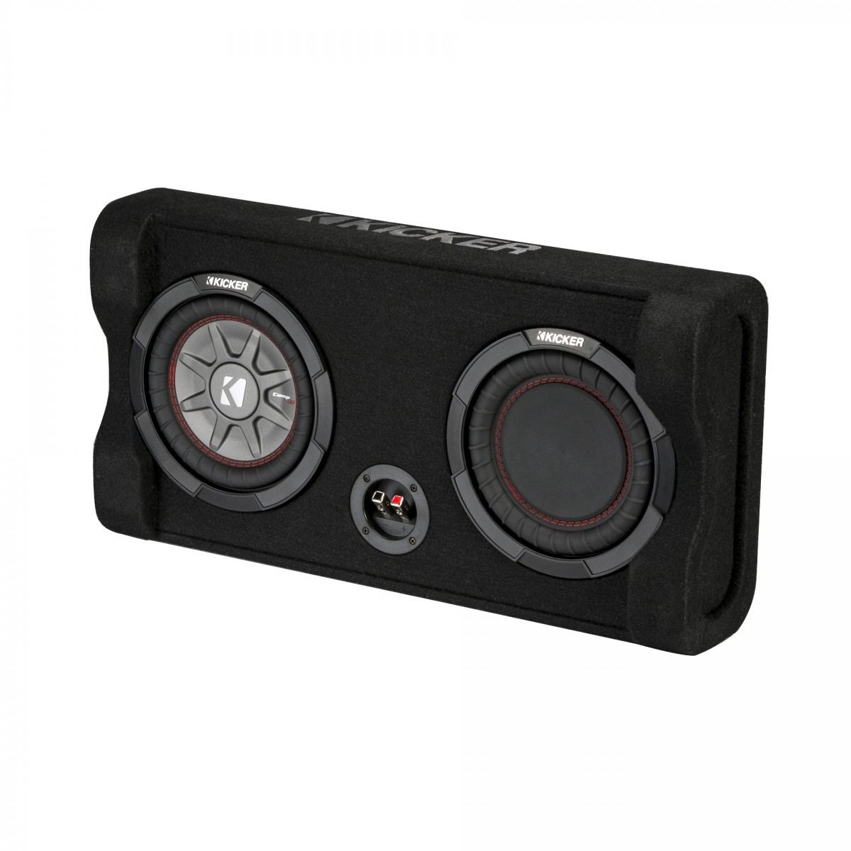 Nové ploché boxy CompRT s úctyhodným výkonom sú vybavené pasívnym subwooferom reFLEX™ a subwooferom Kicker CompRT. Tieto odolné skrine, pokryté štýlovým čiernym kobercom a vyrobené z hrubej MDF dosky, ponúkajú skvelý výkon, bez toho aby zaberali miesto. Sú navrhnuté tak, aby odolali hmotnosti pri sťahovaní a bolo na ne možné dať akýkoľvek bežný náklad (napr. aj psa atď.). 8palcový subwoofer TRTP funguje najlepšie s odporúčaným výkonom zosilňovača 300 wattov.