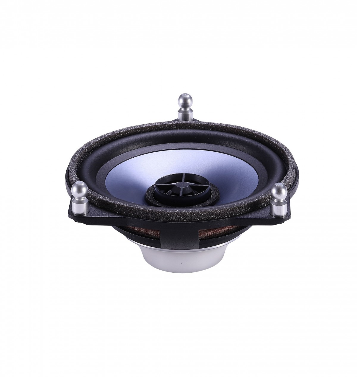 | Typy reproduktorov Koaxiálne reproduktory: Koaxiálne reproduktory sa vyznačujú konštrukciou tzv. Všetko v jednom. Výškový a stredobasový reproduktor sú v jednom koši. Výhodou je jednoduchšia montáž, ale vďaka spojeniu resp. blízkosti pásiem v jednom reproduktore, sa zvyčajne zníži kvalita zvuku. Spravidla uprostred stredobasového reproduktora, je výškový reproduktor, ktorého kmitacia cievka pracuje v druhej vzduchovej medzere spoločného magnatického obvodu. Trojpásmový koaxiálny reproduktor sa skladá zo stredobasového reproduktora, v predu na osobitnom nosníka je stredový reproduktor a samostatný výškový. Komponentné reproduktory: Komponentné reproduktory sa vyznačujú rozdelením na jednotlivé frekvenčné pásma, výškové + stredobasové + popr. basové pásmo. Jednotlivé reproduktory sa dajú umiestniť úplne oddelene, čo má za výsledok lepší zvukový aj akustický prejav. V drvivej väčšine prípadov komponentných reproduktorov je dodávaná aj externá výhybka, ktorá rozdeľuje výškové, stredové / stredobasové a u třípásma aj basové pásmo popr. umožňuje nastavenie decibelovej úrovne u výškového reproduktoru (napr. +2 dB, 0 dB, -2 dB), strmosti (napr. 6dB / okt. 12dB / okt.) či aktívne alebo bi-amp zapojenia. | Koaxiálne 2 pásmové |