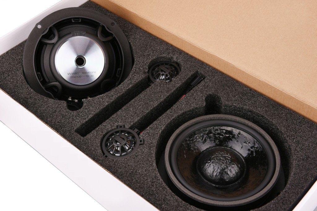 Nové sady pre upgrade značky STEG zahŕňajú roky a roky vývoja, testov a výberu tých najlepších materiálov. Výsledkom je unikát bez konkurencie. Nová sada pre Volkswagen je dokonalým prejavom zvuku a nekompromisného dizajnu, stačí odstrániť originálne a nahradiť ich novými. Nemusíte vo vozidle nič upravovať, rezať alebo inak prispôsobovať. Ani nijak zložito napájať zosilňovače na originálny systém alebo narušovať elektroniku. Celé sety reproduktorov sú presne prispôsobené výmene originálnych, a to systémom plug and play. Jednoduchšie to už byť nemôže! Reproduktory sú citlivejšie, majú vyšší výkon a vďaka kvalitným materiálom aj úplne iný zvukový prejav. Preto je tu obrovský rozdiel už pri napojení na originálny systém. Zámerom talianskych vývojárov bolo umožniť vám vo vašom aute hudobný zážitok ako zo živého koncertu, a to sa s týmito reproduktormi podarilo na 100%!