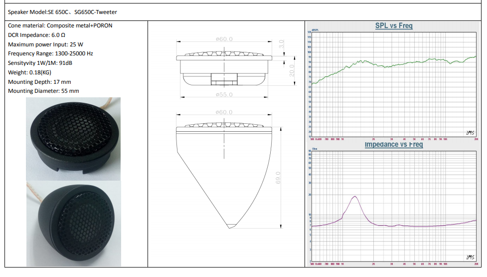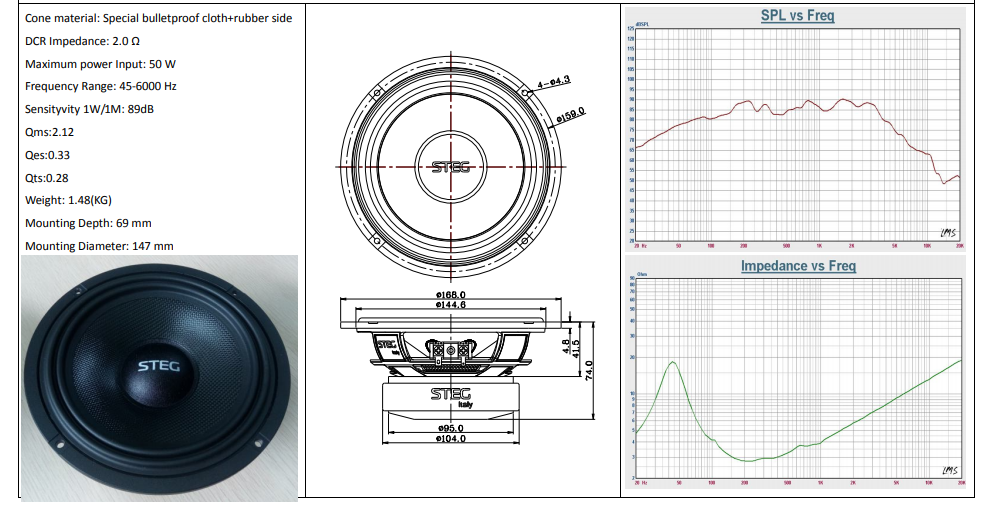 | Montážna hĺbka stredobasu alebo koaxiálneho reproduktoraMontážna hĺbka reproduktora sa meria od najspodnejšej hrany magnetu až po spodný okraj plechového, plastového alebo liateho koša reproduktora, resp. dosadacej plochy reproduktora. | 69 mm |
