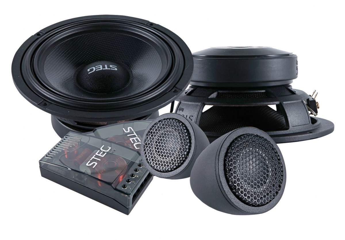 | Typy reproduktorov Koaxiálne reproduktory: Koaxiálne reproduktory sa vyznačujú konštrukciou tzv. Všetko v jednom. Výškový a stredobasový reproduktor sú v jednom koši. Výhodou je jednoduchšia montáž, ale vďaka spojeniu resp. blízkosti pásiem v jednom reproduktore, sa zvyčajne zníži kvalita zvuku. Spravidla uprostred stredobasového reproduktora, je výškový reproduktor, ktorého kmitacia cievka pracuje v druhej vzduchovej medzere spoločného magnatického obvodu. Trojpásmový koaxiálny reproduktor sa skladá zo stredobasového reproduktora, v predu na osobitnom nosníka je stredový reproduktor a samostatný výškový. Komponentné reproduktory: Komponentné reproduktory sa vyznačujú rozdelením na jednotlivé frekvenčné pásma, výškové + stredobasové + popr. basové pásmo. Jednotlivé reproduktory sa dajú umiestniť úplne oddelene, čo má za výsledok lepší zvukový aj akustický prejav. V drvivej väčšine prípadov komponentných reproduktorov je dodávaná aj externá výhybka, ktorá rozdeľuje výškové, stredové / stredobasové a u třípásma aj basové pásmo popr. umožňuje nastavenie decibelovej úrovne u výškového reproduktoru (napr. +2 dB, 0 dB, -2 dB), strmosti (napr. 6dB / okt. 12dB / okt.) či aktívne alebo bi-amp zapojenia. | Komponentné 2 pásmové |