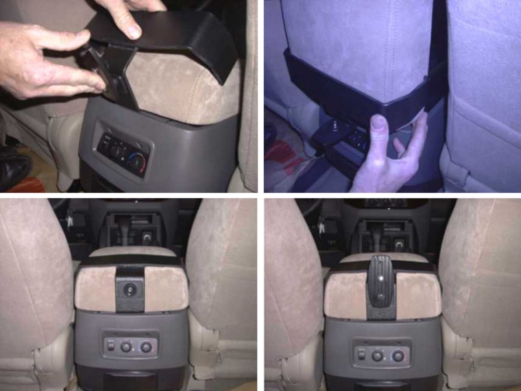 Konzola vhodná pre umiestnenie monitora, na stredový panel medzi sedadlo vodiča a spolujazdca, pre sledovanie zo zadných sedadiel. Prevedenie, ktoré nebránia posunu ani náklonu sedadiel. Umiestnenie do interiéru bez vŕtania. Vhodné pre väčšinu typy monitorov s uchytením do zadnej vertikálnej drážky.Vhodné pre automobily