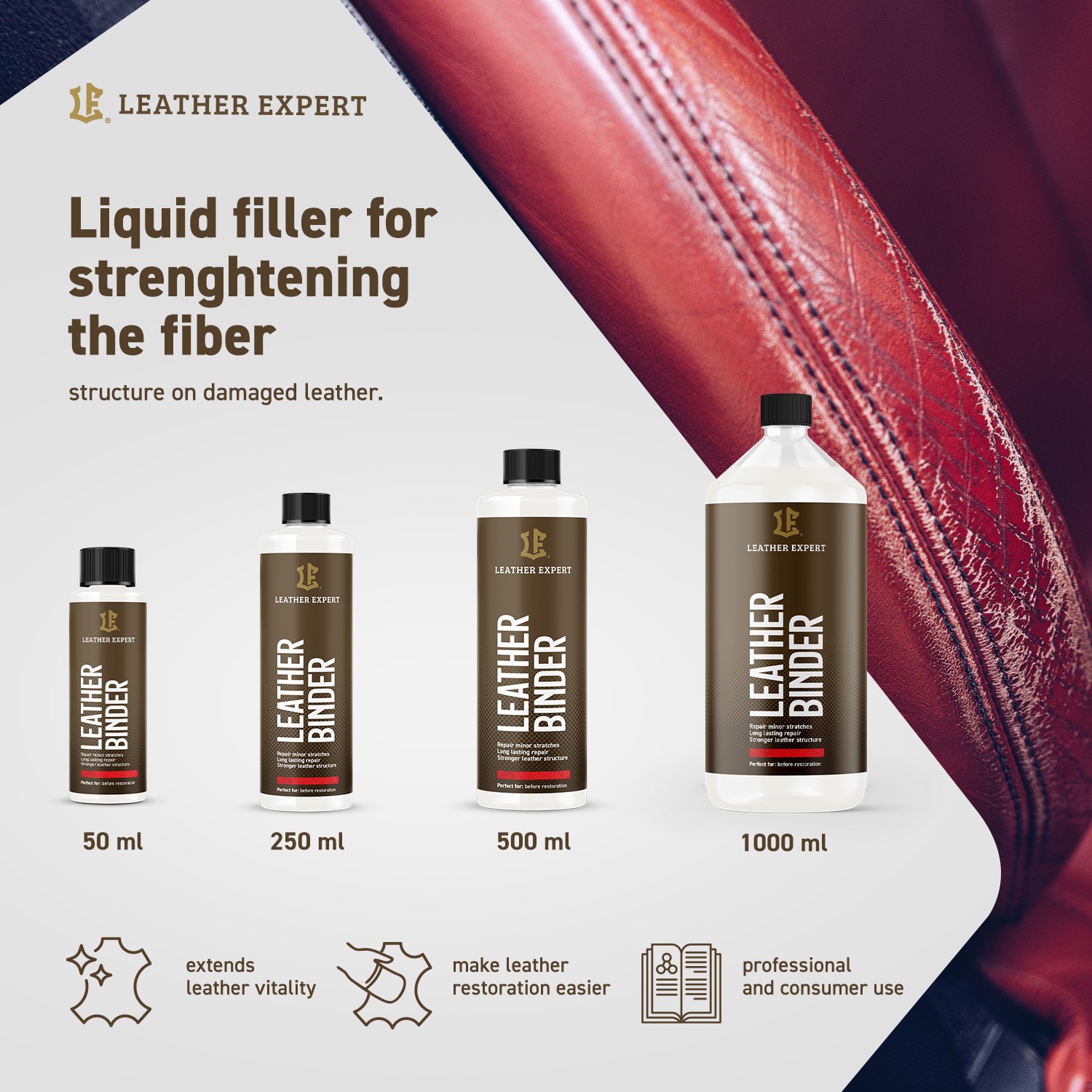Leather Expert je značka, ktorá neustále pracuje na inováciách, stanovuje nové štandardy v kožiarskom priemysle a usiluje sa o dokonalosť všetkých svojich výrobkov. V Leather Expert neustále hľadajú nové spôsoby, ako vytvoriť dokonalý výrobok na starostlivosť o kožu a jej renováciu. Stali sa tak popredným výrobcom produktov, ktoré uľahčujú renováciu a starostlivosť o kožu. V Leather Expert dokonale poznajú vlastnosti všetkých druhov kože, poskytujú dokonalé výrobky pre konkrétny druh kože a na riešenie konkrétneho problému danej kože. Sú skutočnými odborníkmi na renováciu a starostlivosť o rôzne kožené povrchy - ich produkty sú najvyššej kvality. Spolupracujú aj so známymi detailingovými centrami, čalúnnikmi a firmami vyrábajúcimi kožené výrobky. Leather Expert ponúka kompletný sortiment výrobkov na starostlivosť, čistenie a renováciu kože, a to všetko za veľmi priaznivé ceny!| Katalógové číslo | LE-BINDER 1000 |