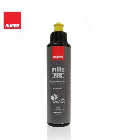 Žltá leštiacia v mnohých prípadoch finálna pasta Mille Fine s objemom 250 ml s novým zložením. Mastnejšia pre dlhšie a intenzívnejšie leštenie pod vyššími otáčkami pri jednom nanesení na pad bez prašnosti. To je nová pasta Mille Fine. Nová pasta Rupes Mille Fine Compound pre rýchly a dokonalý finiš. Mastnejšia konzistencia umožňuje leštenie väčších plôch pod vyššou teplotou. Pasta Mille Fine je farbená na žltú farbu pre lepšiu kontrolu práce. Dobre sa čistí z molitanových kotúčov, vlnených padov alebo mikrovlákien.