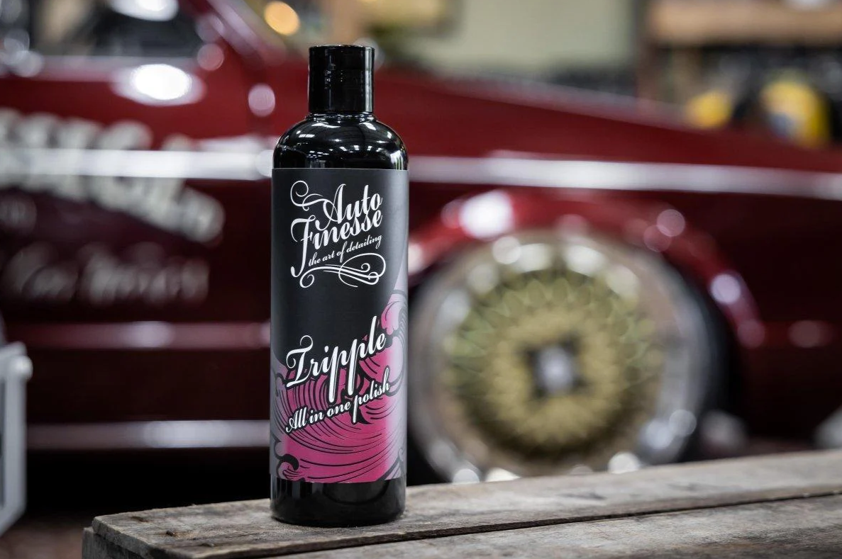Auto Finesse Tripple All In One Polish patrí jednoznačne medzi najefektívnejšie leštidlá, ktoré sú dnes na trhu. Tripple je s prímesou pravého karnaubského vosku a glazúry. Auto Finesse Tripple je špičkové leštidlo, ktoré dodá laku vášho auta hlboký a mokrý lesk. Toto leštidlo je vhodné na odstraňovanie menších defektov v laku, ľahkých škrabancov a oxidácie. Disponuje vysokým čistiacim účinkom a dokáže skrývať drobné poškodenia laku. Tripple odstraňuje oxidáciu a kontamináciu pomocou čistiacich rozpúšťadiel. Vďaka obsahu karnaubského vosku ponúka aj dlhú životnosť niekoľko mesiacov. Tripple zanecháva ultra tenkú ochrannú vrstvu, ktorá práve zakryje drobné vady – glazúru. Ďalej pridá druhú vrstvu, tentoraz z pravého T1 karnaubského vosku, ktorý chráni povrch, maximalizuje lesk a zvýrazňuje farby. Tripple funguje veľmi rýchlo. Jeho ultrajemné brúsne čiastočky sú skvelé na svetlé typy farieb, neuveriteľná účinnosť sa objaví pri teplých, tmavých farbách, ako je čierna, červená, a pod. Tripple je vhodný ako pre ručné, tak aj strojové leštenie laku. Tak ako všetky produkty Auto Finesse, tak aj Tripple patrí medzi profesionálne produkty určené pre skúsených detailerov. Vďaka vysokej efektivite a jednoduchosti aplikácie dosiahne s týmto prípravkom skvelé výsledky aj začiatočník.