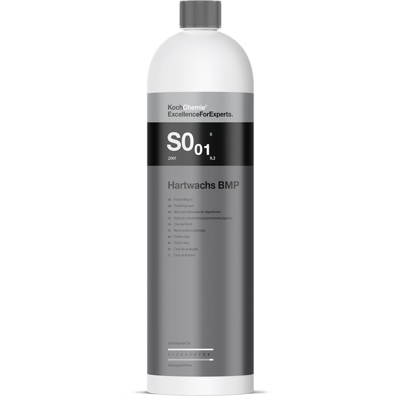 Leštenie voskom na konečné leštenie s dlhotrvajúcim účinkom. Určené pre všetky typy lakov a rôzne plasty. Vďaka špeciálnej zmesi obzvlášť tvrdých a odolných špeciálnych voskov Hartwachs BMP čistí, ošetruje a konzervuje ošetrované povrchy, ktorým dodáva výnimočný hlboký lesk a jedinečne hladký povrch na dlhé mesiace. Odstraňuje zvyšky konzervačných prostriedkov a stopy asfaltu.