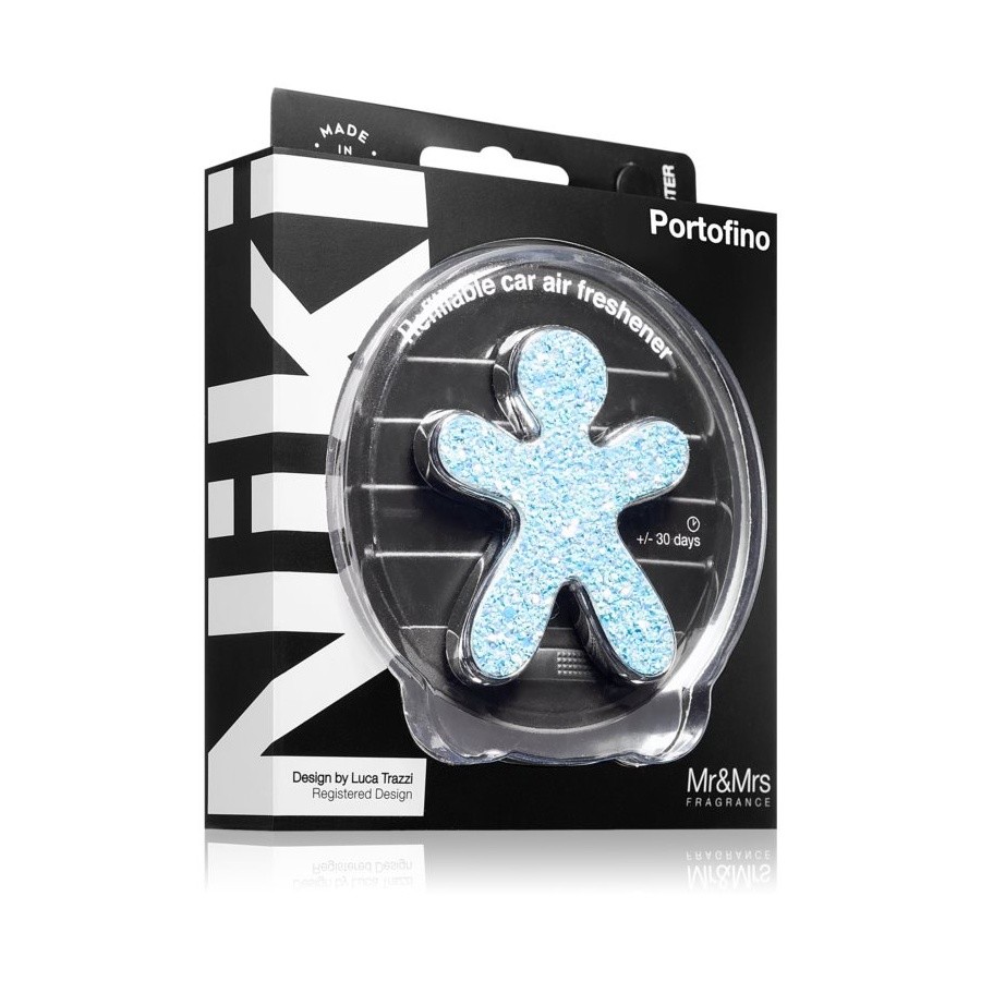 Vôňa do auta Niki Fashion je dizajnovou luxusnou autovôňou, ktorá je nástupcom toľko obľúbených panáčikov Niki. Balenie obsahuje aj iniciačnú náplň, ktorú je možné kedykoľvek po vyvoňaní vymeniť za novú náplň v rovnakej či inej vôni. Prevoňte vaše auto so sviežou ovocnou vôňou Portofino. Vôňa Portofino je jedinečným kokteilom šťavnatého ovocia a kvetinových tónov, ktoré vás zavedú na spanilú cestu okolo sveta. Pomocou univerzálneho funkčného klipu pripevníte vôňu (vertikálne alebo horizontálne) na vetracie otvory (vývod klimatizácie) každého auta. Vôňa do auta potom za pomoci prúdiaceho vzduchu rozvádza stálu a dlhotrvajúcu vôňu. Môžete použiť EVA náplň napustenú aróma olejom podľa výberu, ktorú môžete ľahko nahradiť novou náplňou. Balenie vrátane iniciálnej náplne, ktorú je možné kedykoľvek vymeniť za jednu z 15 iných alternatív.